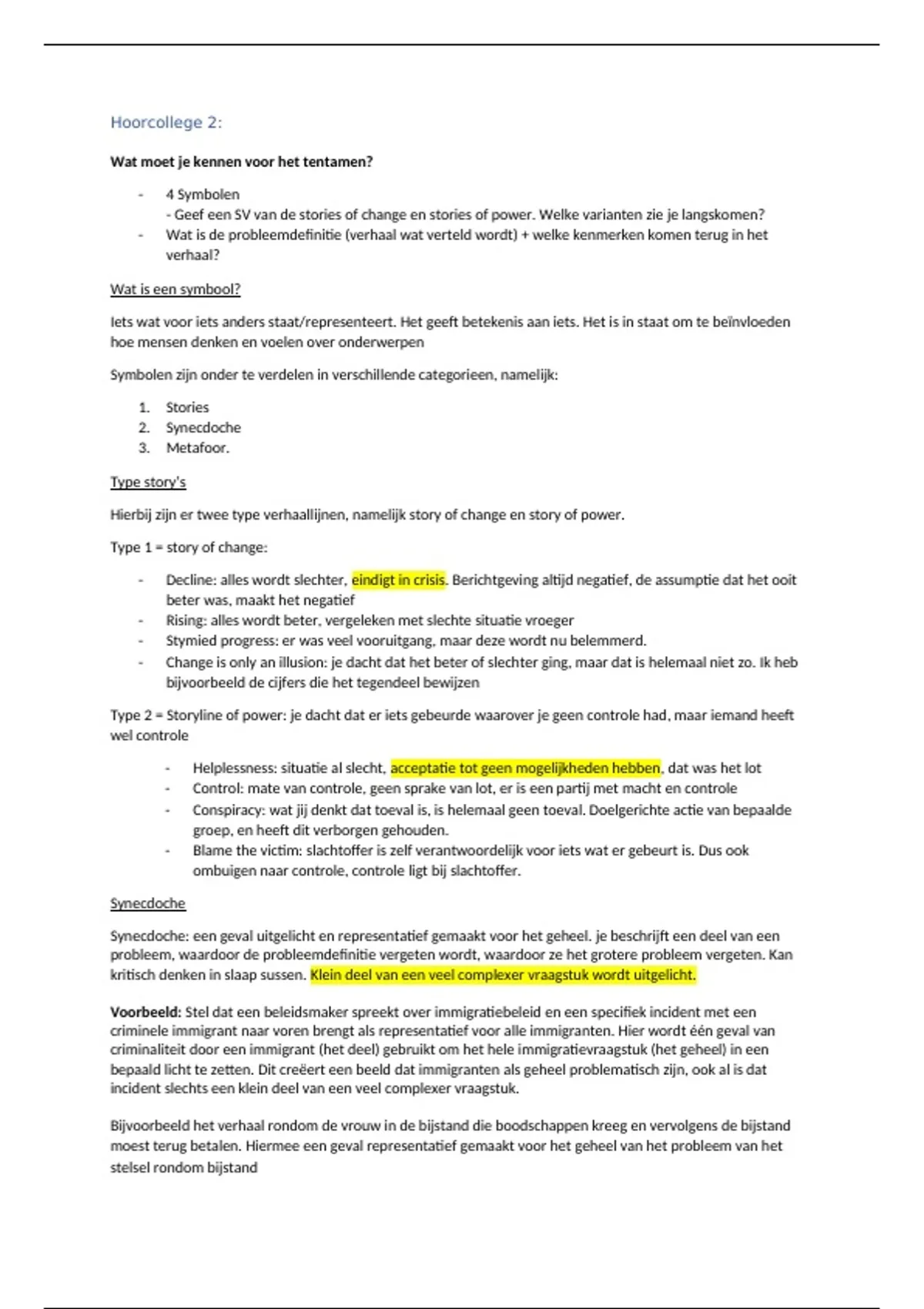 - Wat is de probleemdefinitie (verhaal wat verteld wordt) + welke kenmerken komen terug in het