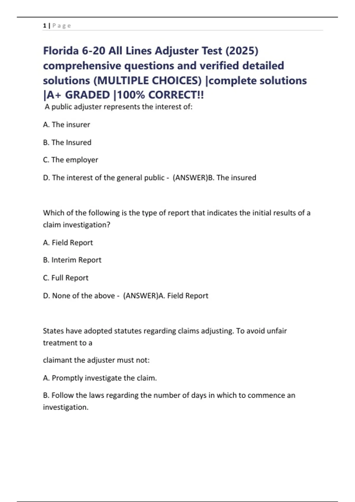 received. - (ANSWER)C. Deny the claim until a fair and prompt investigation has