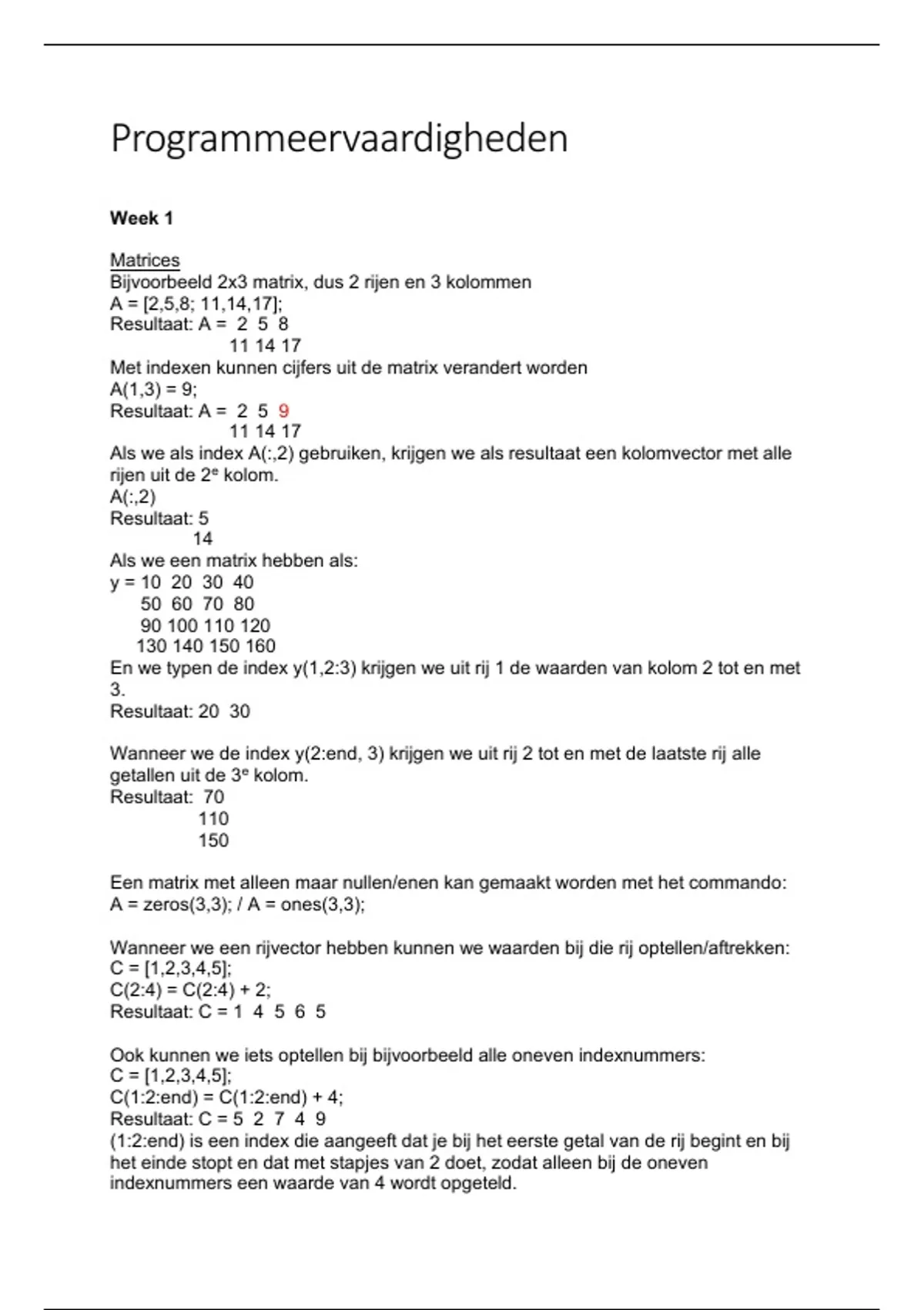 Met indexen kunnen cijfers uit de matrix verandert worden