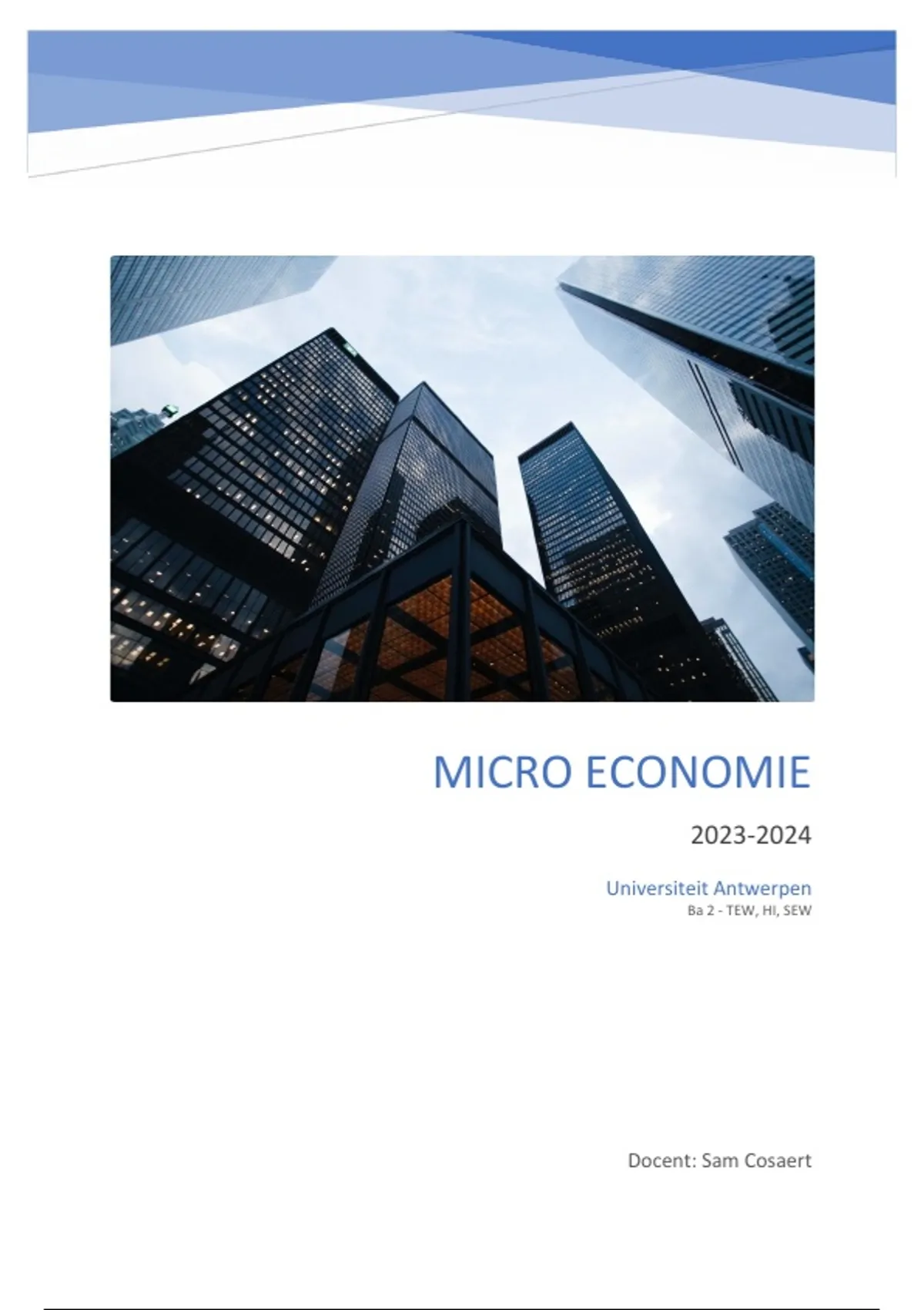 Deze samenvatting van het vak micro-economie behandelt de leerstof die gezien werd tijdens de