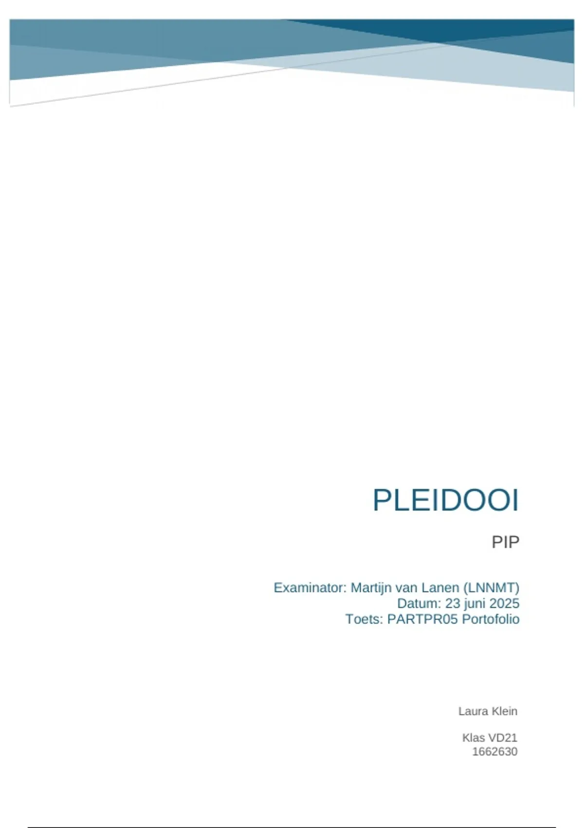 Pleidooi gehaald met een 7,4! Gebruik hem als voorbeeld en haal er je voordeel uit.