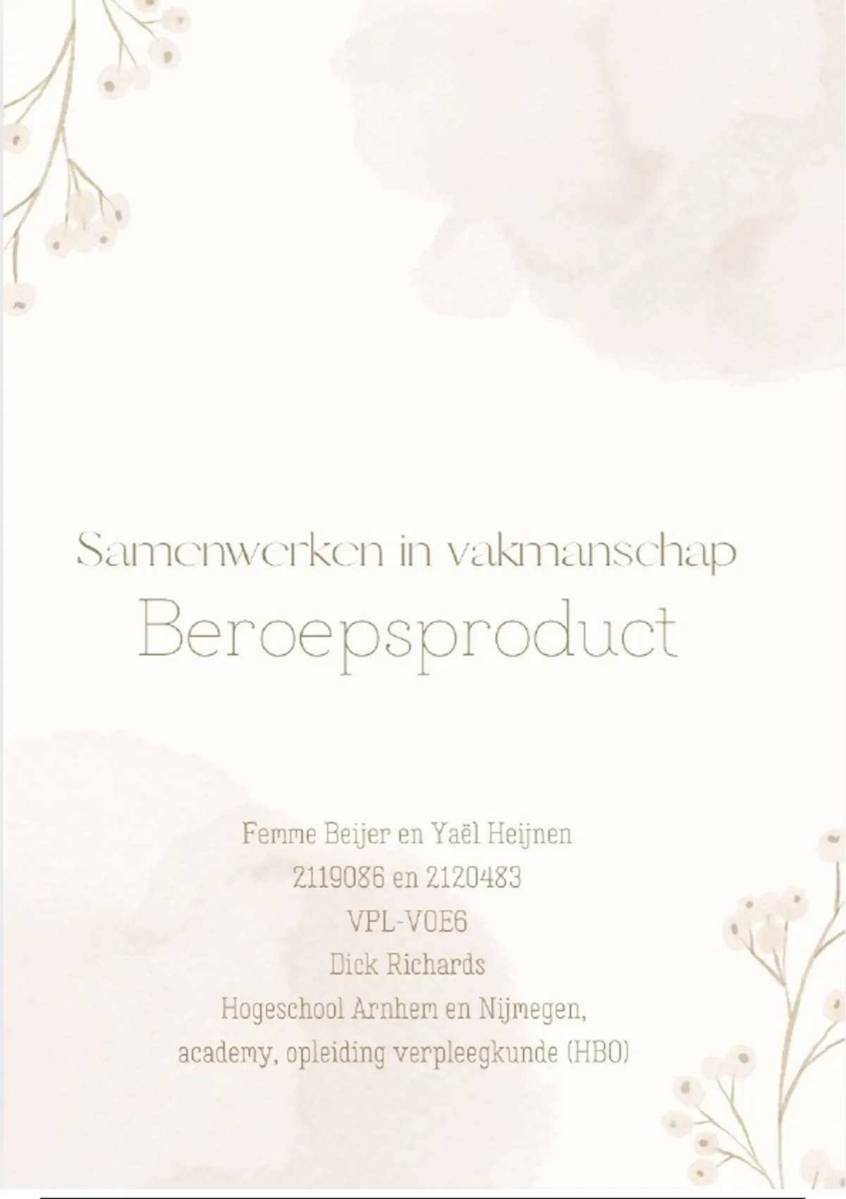 en onszelf verder te ontwikkelen tot hbo-verpleegkundigen. Door dit beroepsproduct hebben