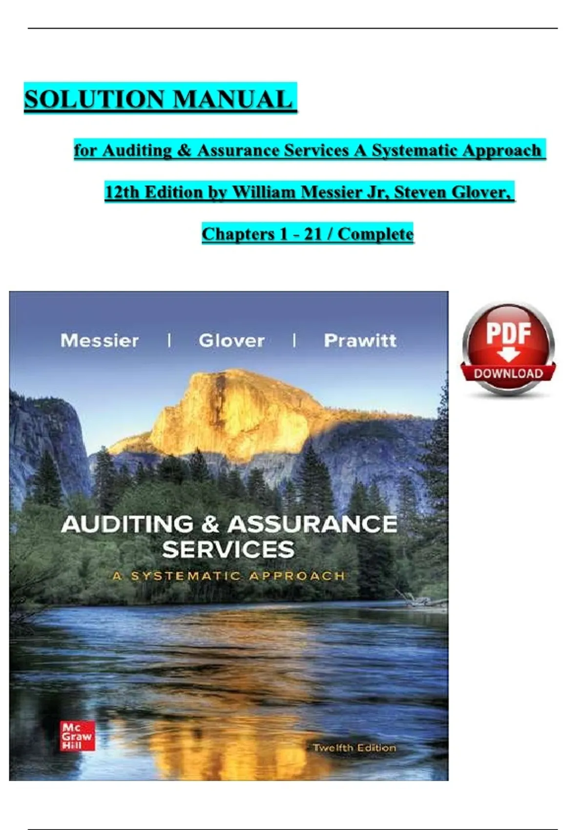 Solution Manual For Auditing & Assurance Services: A Systematic Approach, 12th Edition By William Messier Jr, Steven Glover, Verified Chapters 1 - 21, Complete Newest Version
