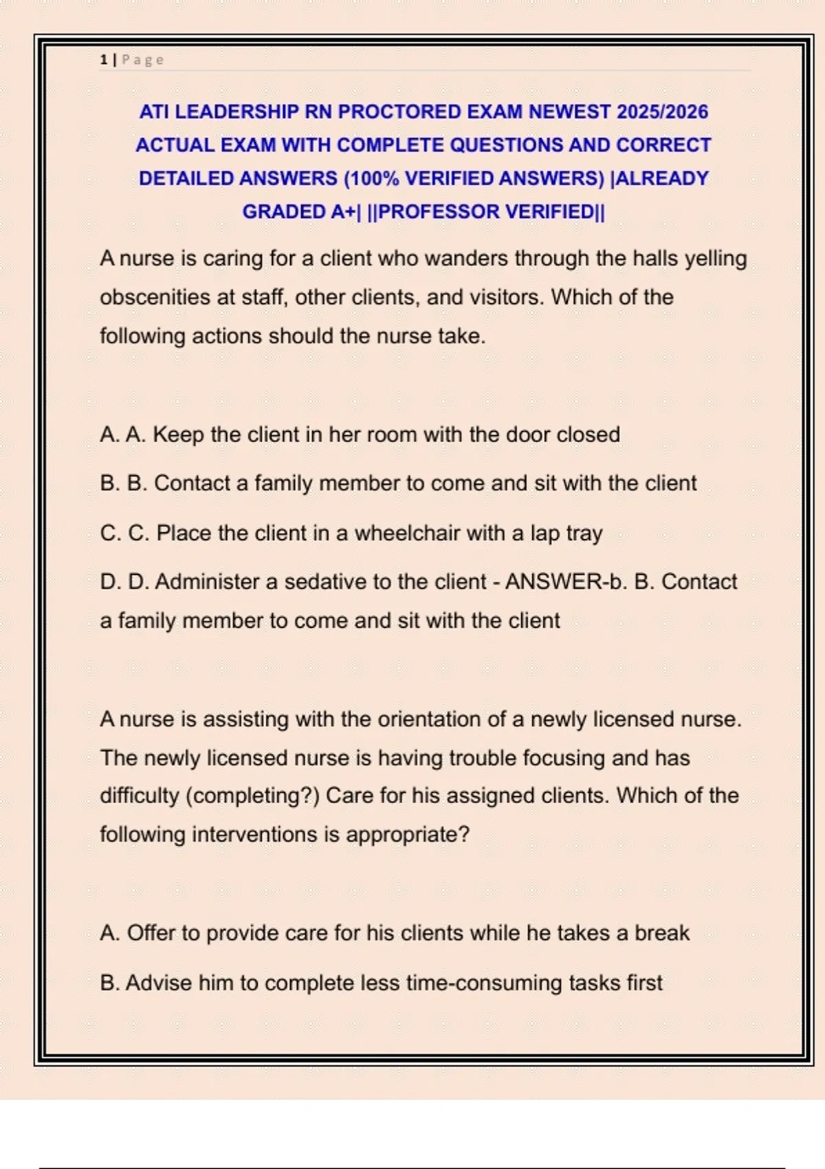 ATI LEADERSHIP RN PROCTORED EXAM NEWEST 2025/2026