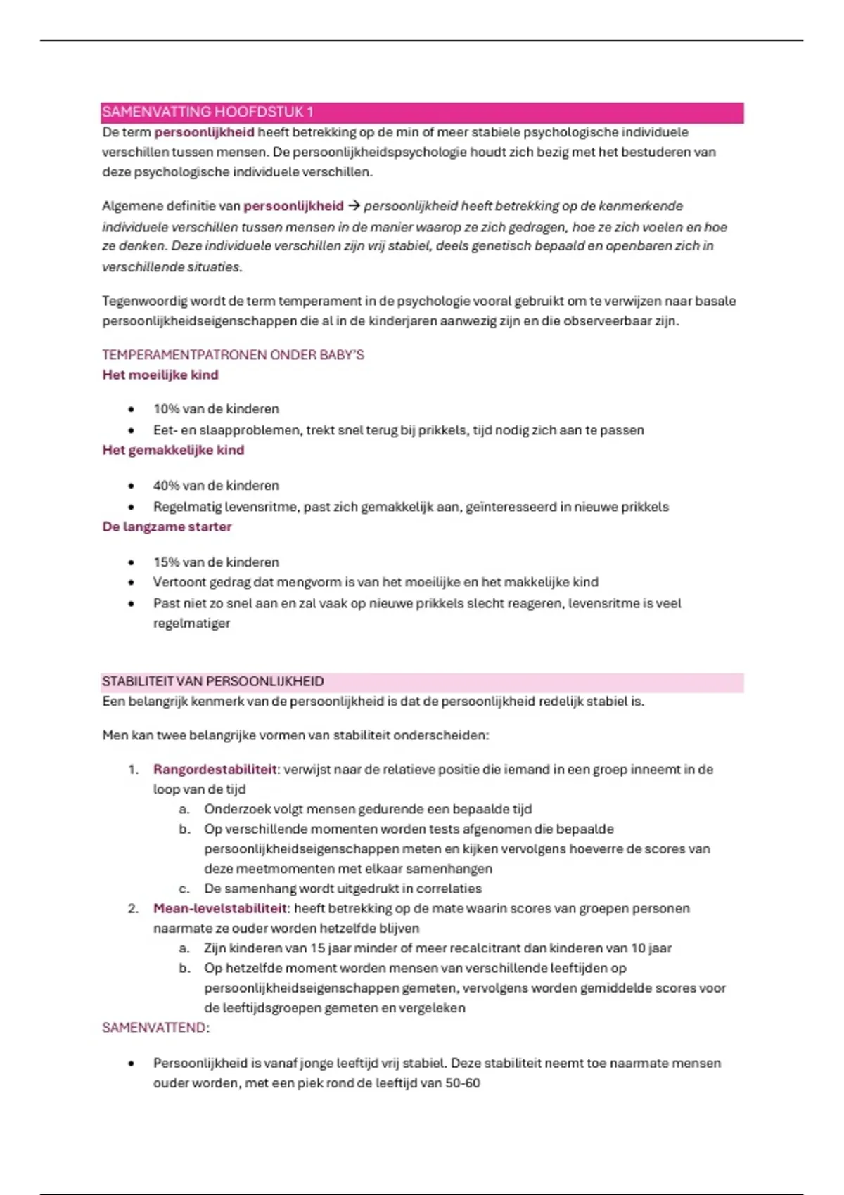 • Persoonlijkheid is vanaf jonge leeftijd vrij stabiel. Deze stabiliteit neemt toe naarmate mensen