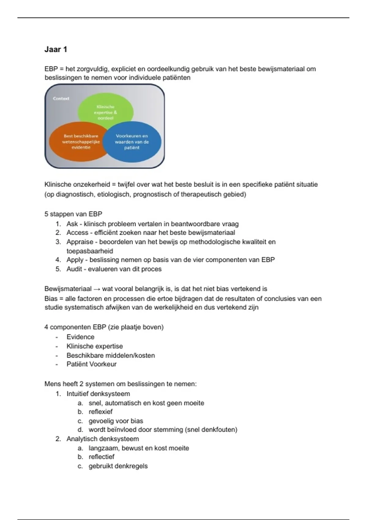 EBP = het zorgvuldig, expliciet en oordeelkundig gebruik van het beste bewijsmateriaal om