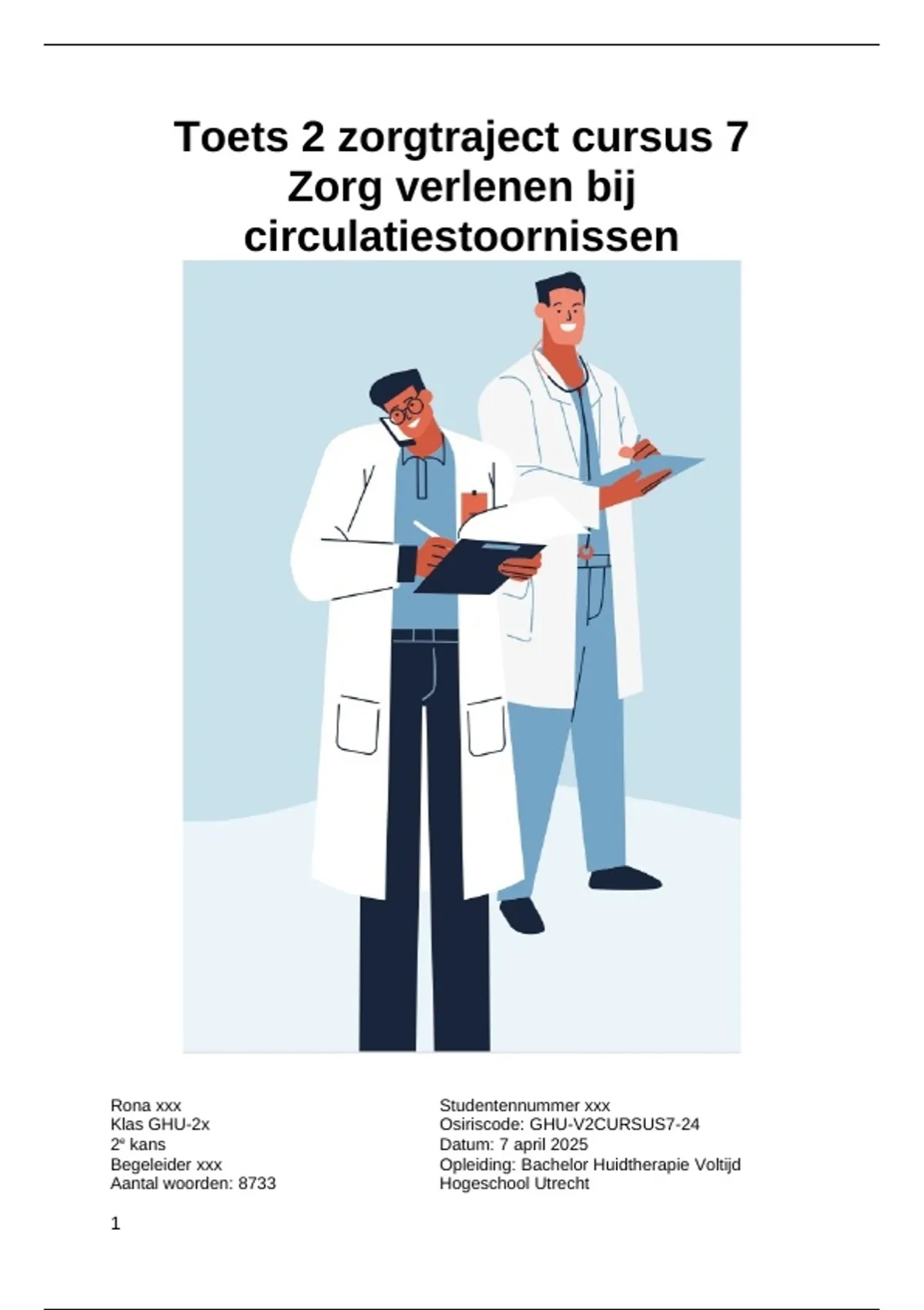 Begeleider xxx Opleiding: Bachelor Huidtherapie Voltijd