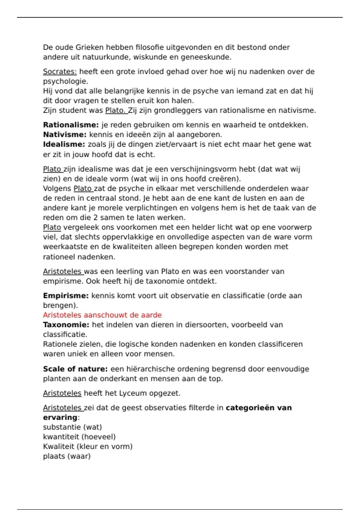 Aristoteles was een leerling van Plato en was een voorstander van