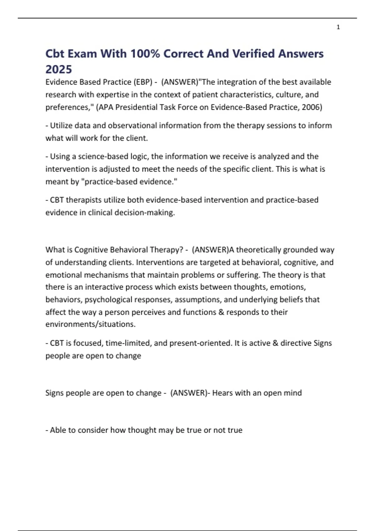 Cbt Exam With 100% Correct And Verified Answers