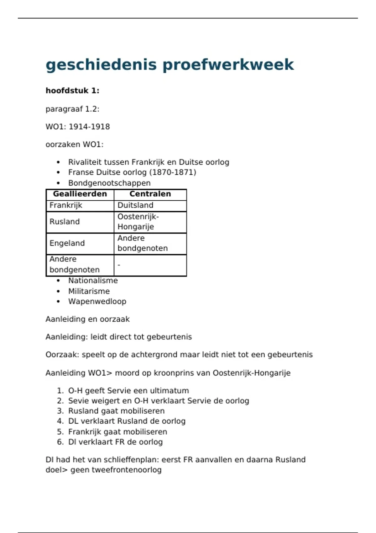 oorzaken WO1: