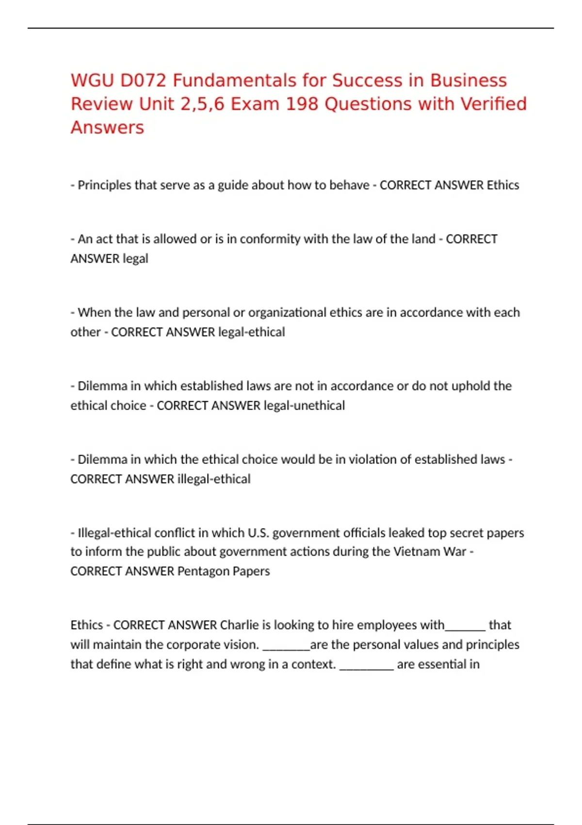 Review Unit 2,5,6 Exam 198 Questions with Verified