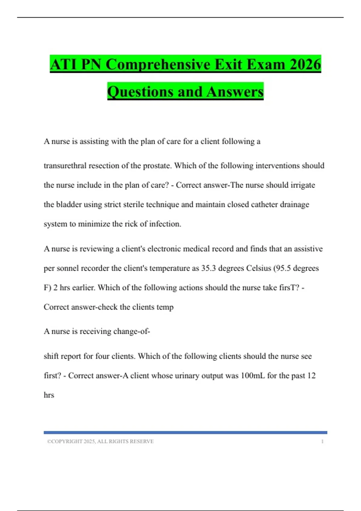 first? - Correct answer-A client whose urinary output was 100mL for the past 12