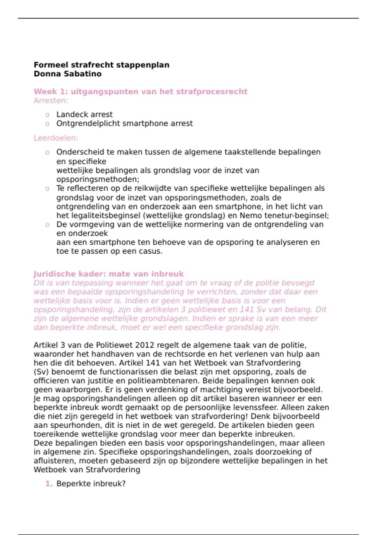 Dit document bevat van elke week een stappenplan van de besproken onderwerpen die je moet weten voor het tentamen. Met alleen dit document heb ik een 7,5 gehaald voor het tentamen!