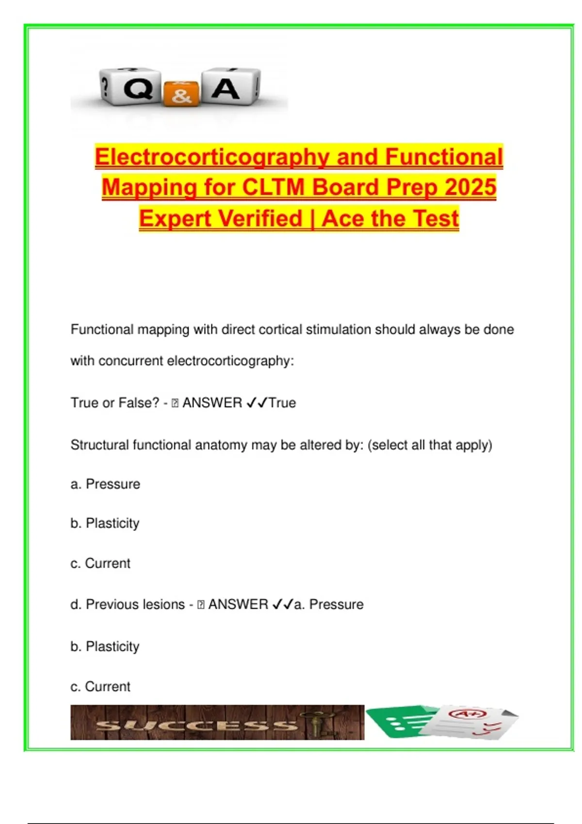 d. Neuroplasticity - 🧠 ANSWER ✔✔d. Neuroplasticity