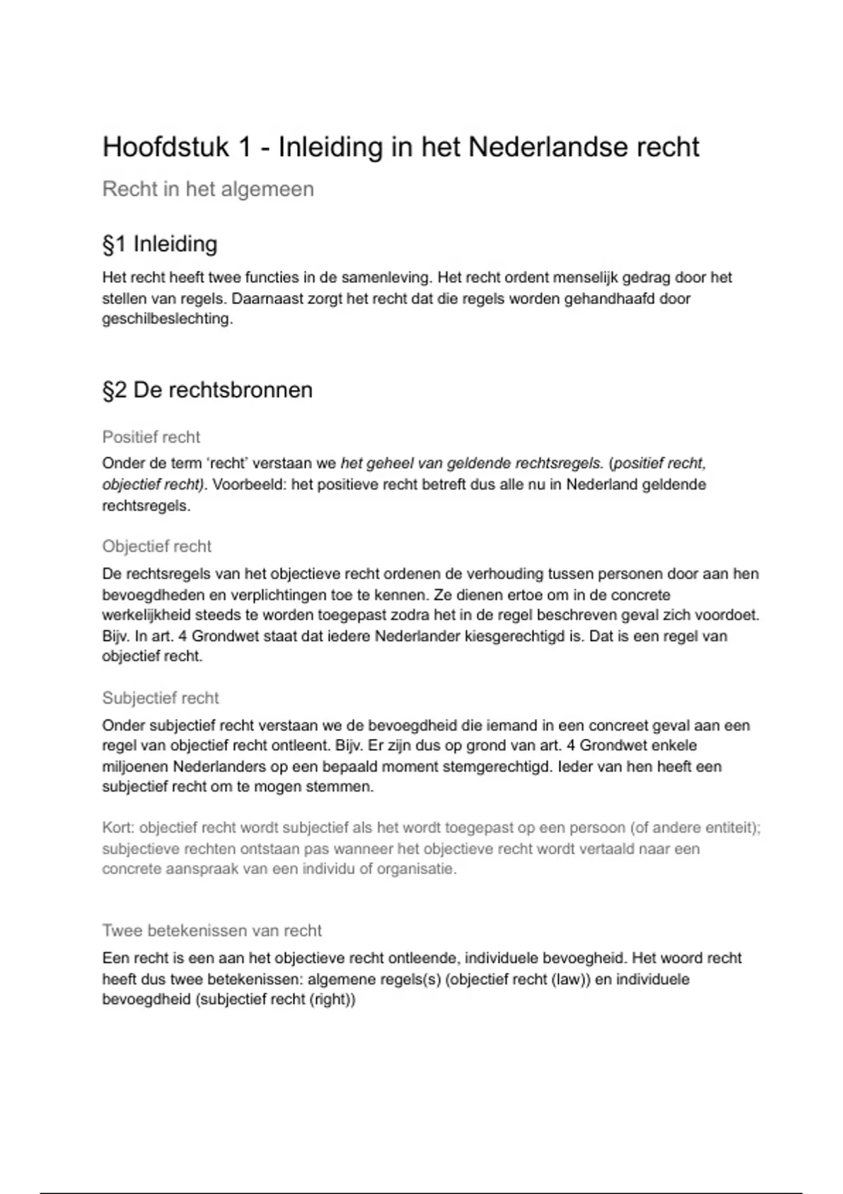 objectief recht). Voorbeeld: het positieve recht betreft dus alle nu in Nederland geldende
