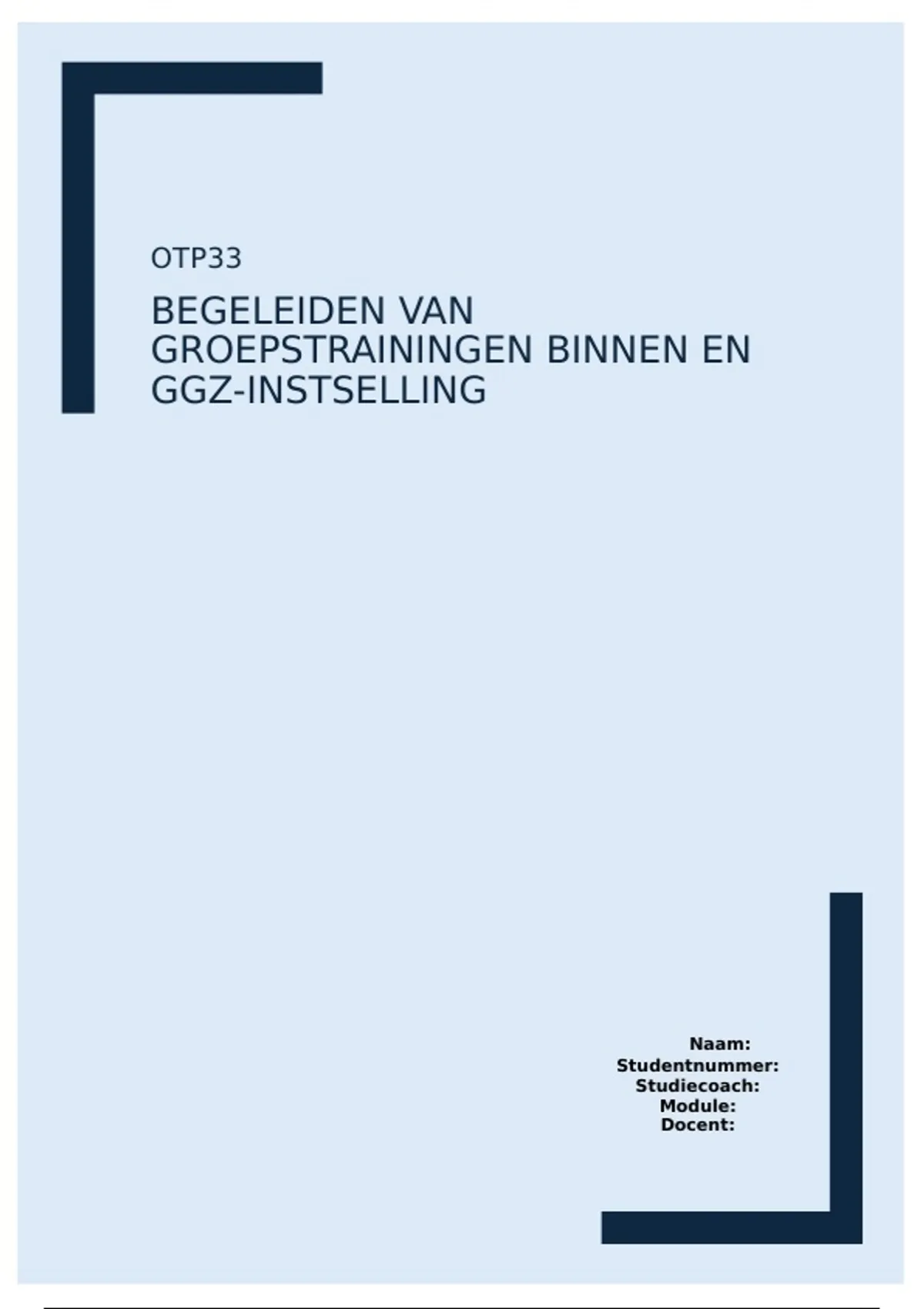 OTP33 Begeleiden van groepstrainingen in een GGZ-setting