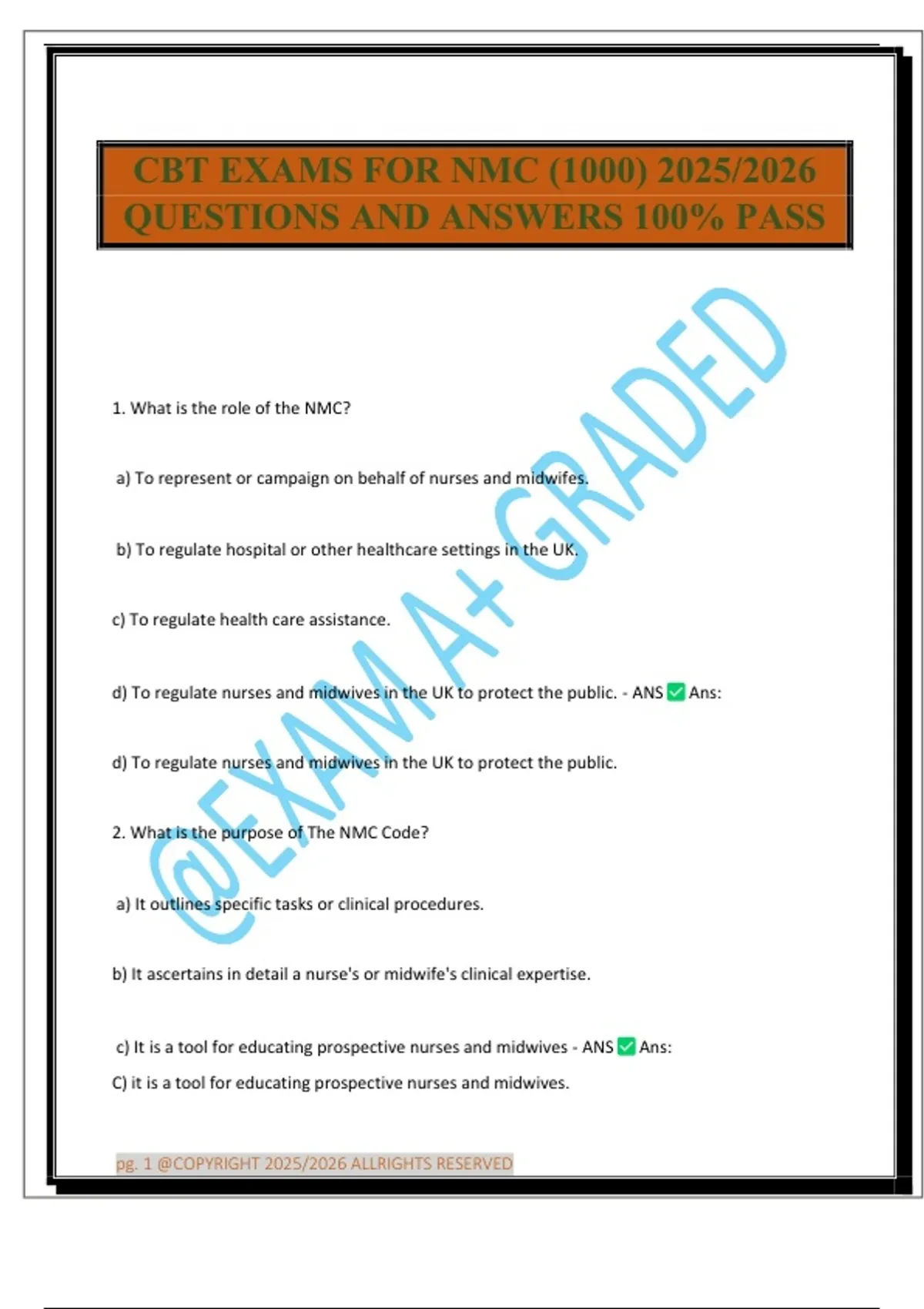 CBT EXAMS FOR NMC (1000) 2025/2026