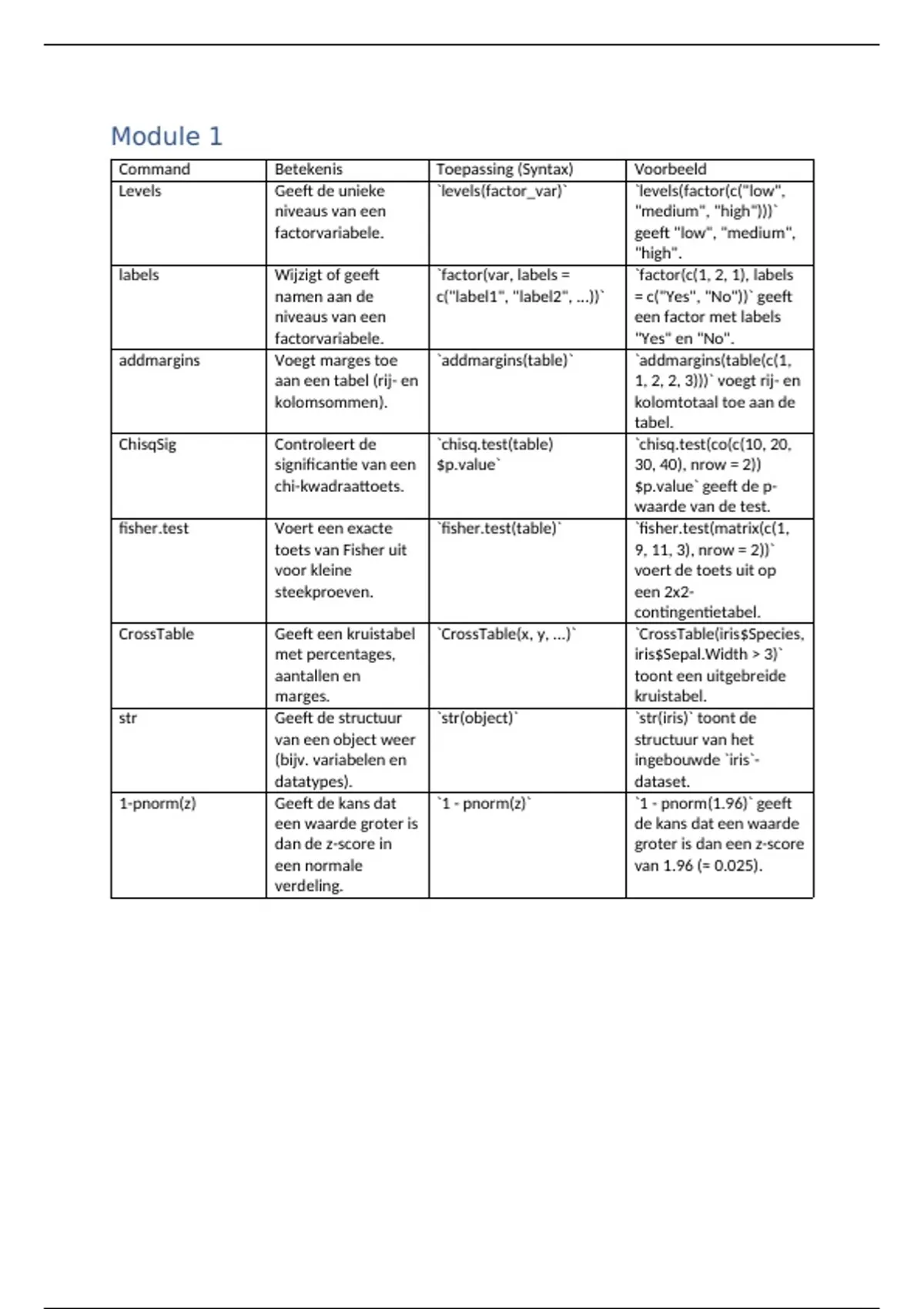 fisher.test Voert een exacte `fisher.test(table)` `fisher.test(matrix(c(1,