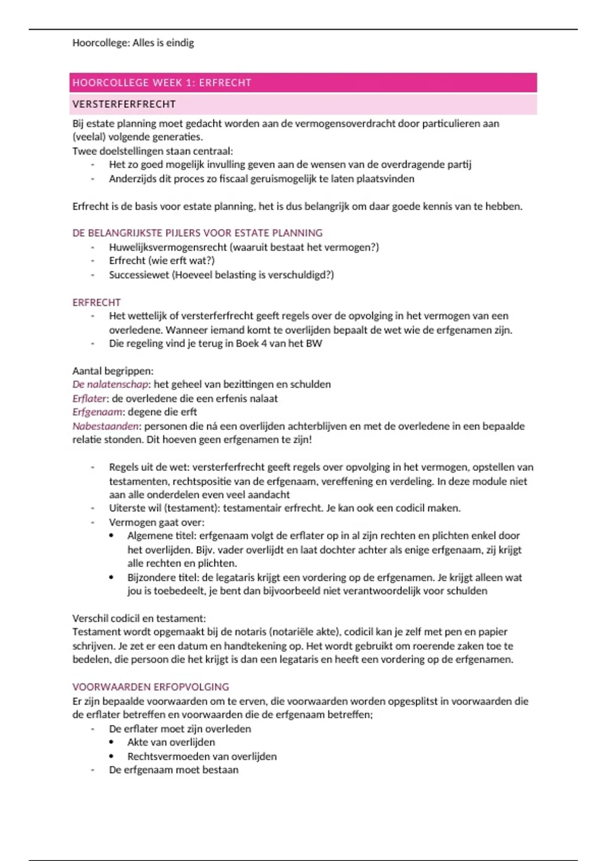 HOORCOLLEGE WEEK 1: ERFRECHT