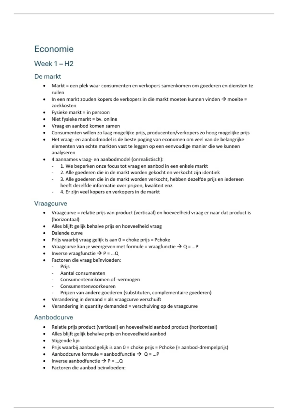 - 1. We beperken onze focus tot vraag en aanbod in een enkele markt