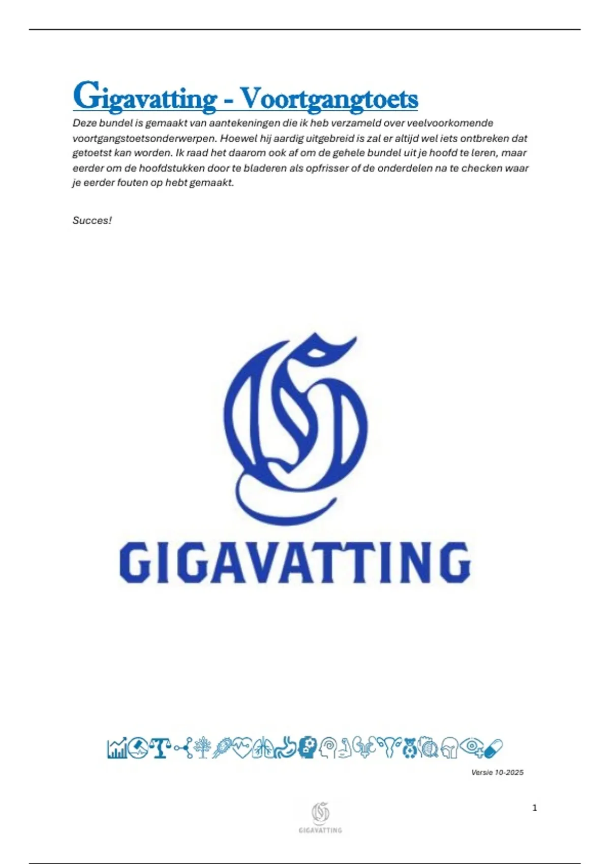 Deze bundel is gemaakt van aantekeningen die ik heb verzameld over veelvoorkomende voortgangstoetsonderwerpen. Hoewel hij aardig uitgebreid is zal er altijd wel iets ontbreken dat getoetst kan worden. Ik raad het daarom ook af om de gehele bundel uit je hoofd te leren, maar eerder om de hoofdstukken door te bladeren als opfrisser of de onderdelen na te checken waar je eerder fouten op hebt gemaakt.