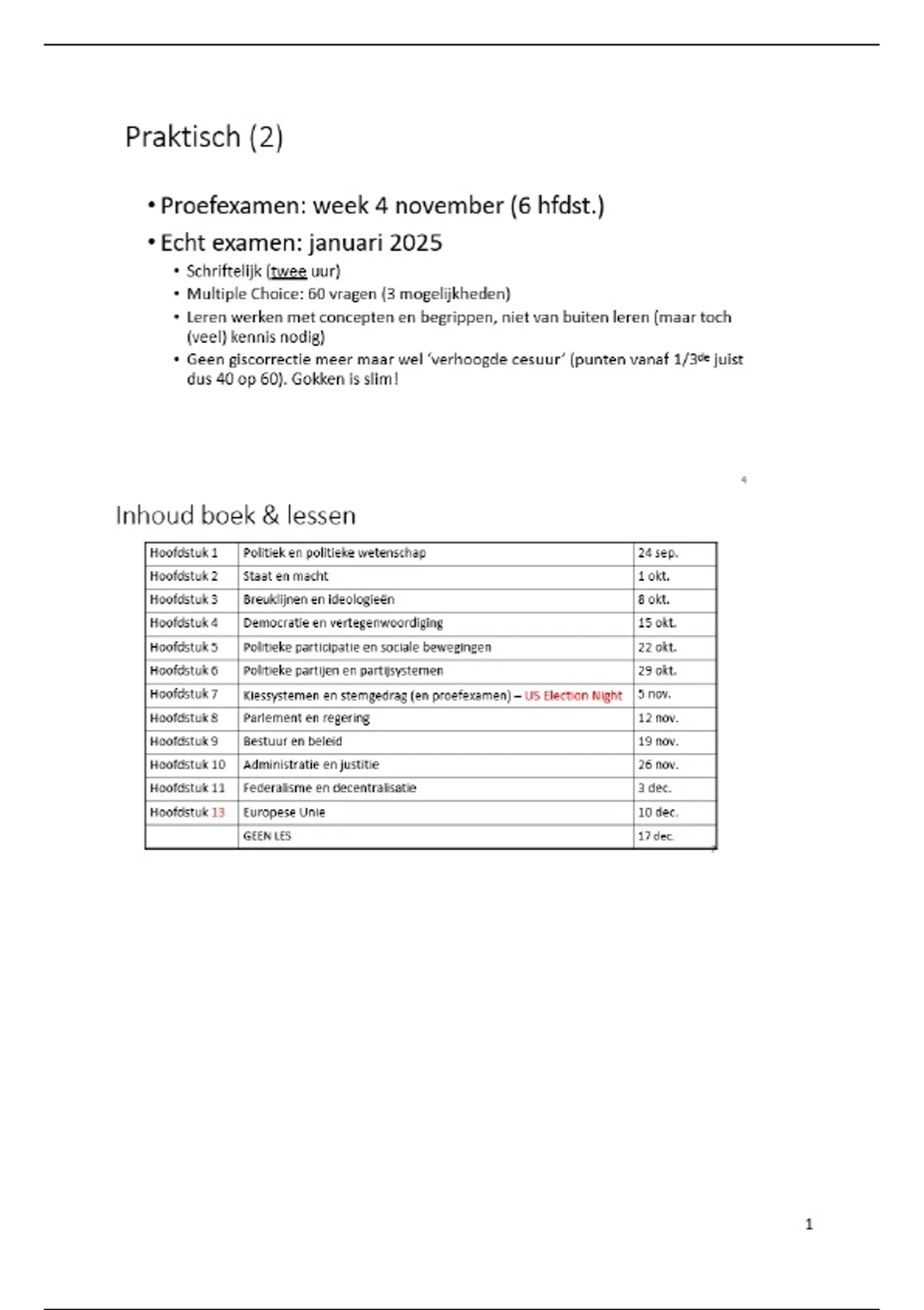 Instellingen: we denken na over hoe werkt een parlement/regering? Wat is de verhouding