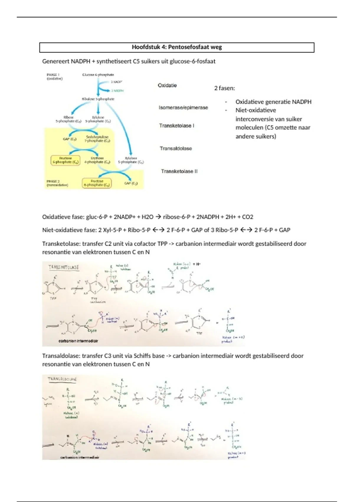 Samenvatting hoofdstuk 4 metabolisme: "Pentosefosfaat weg"