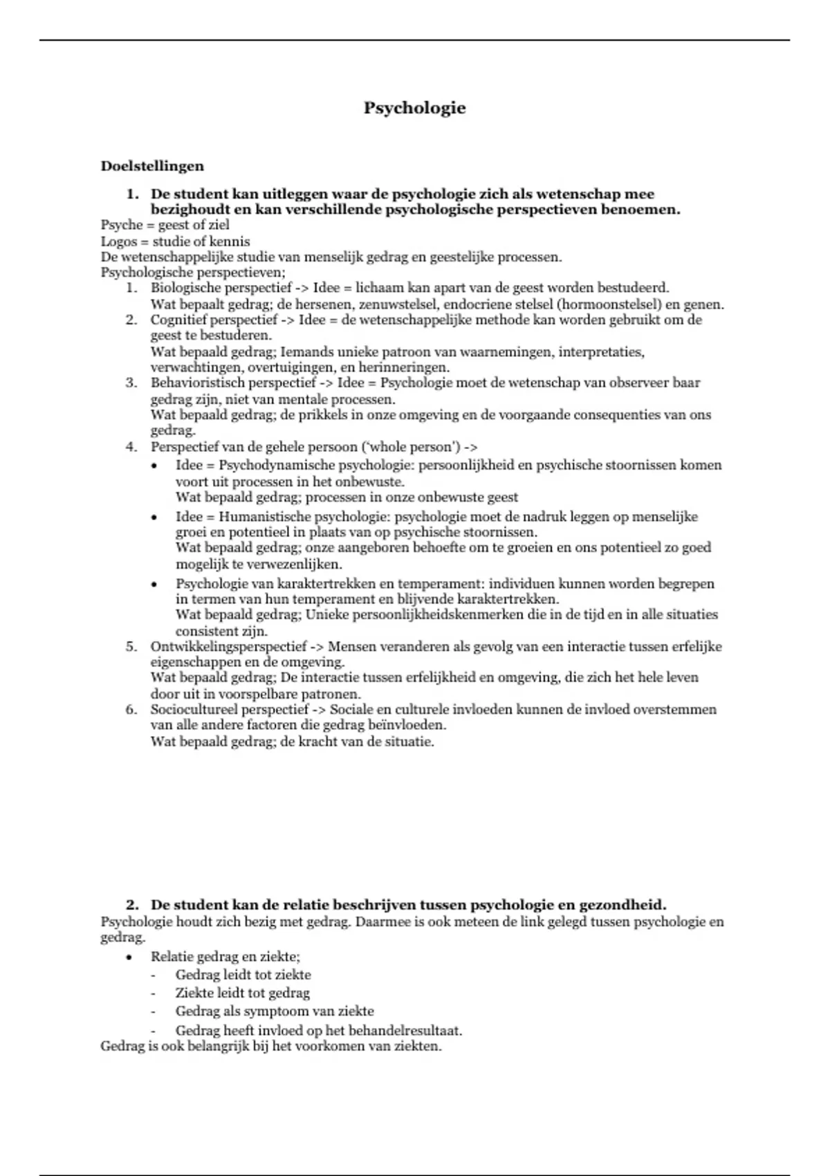 Uitwerkingen van de doelstellingen van het inleiding college Psychologie