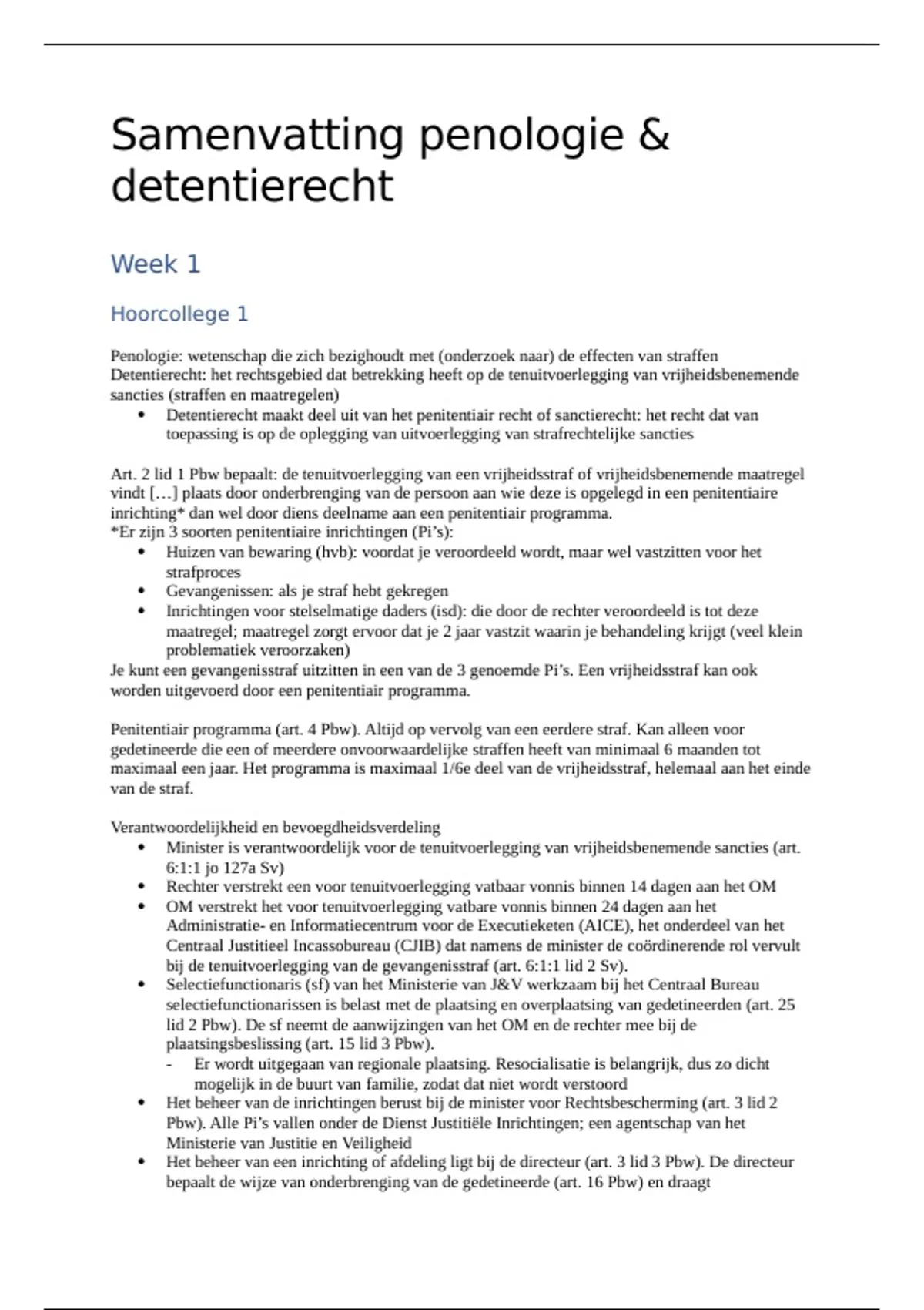 Art. 2 lid 1 Pbw bepaalt: de tenuitvoerlegging van een vrijheidsstraf of vrijheidsbenemende maatregel