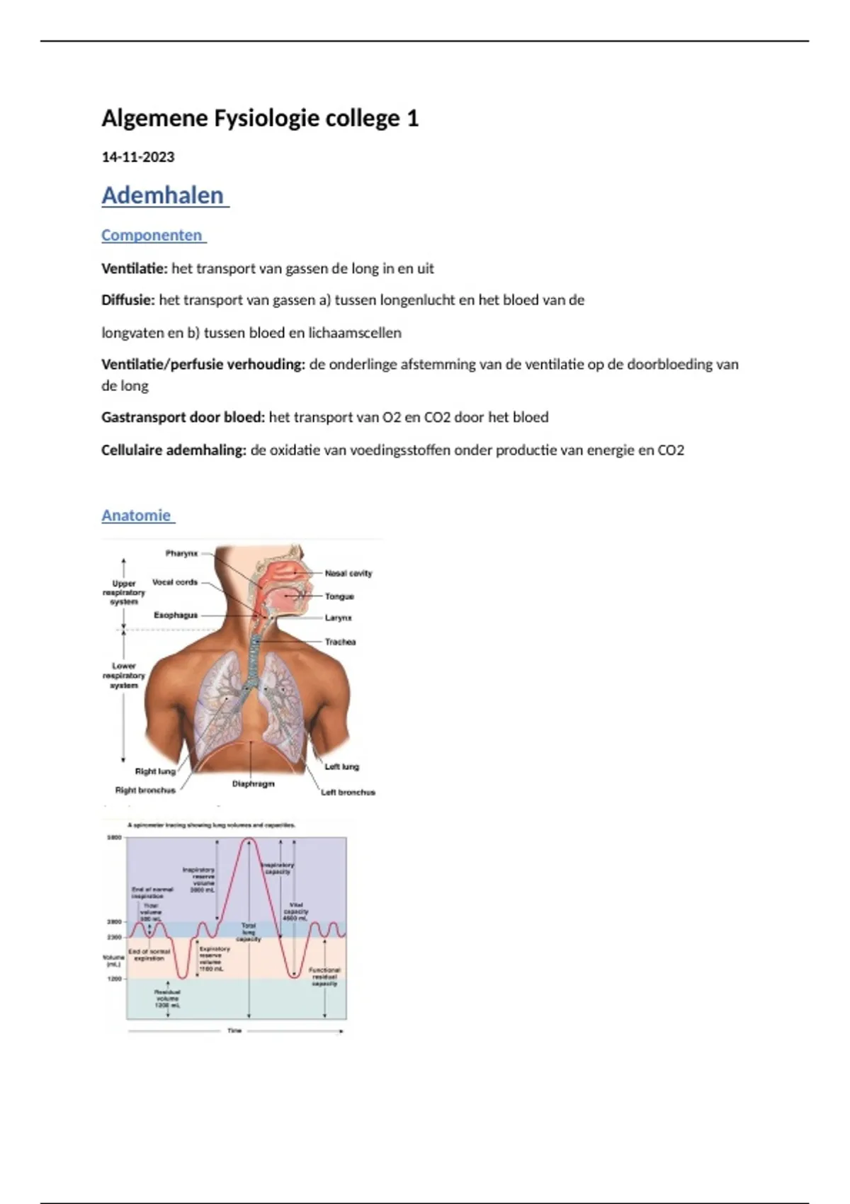 Anatomische dode ruimte= delen waar wel lucht in zit, vooral in de luchtwegen, maar geen