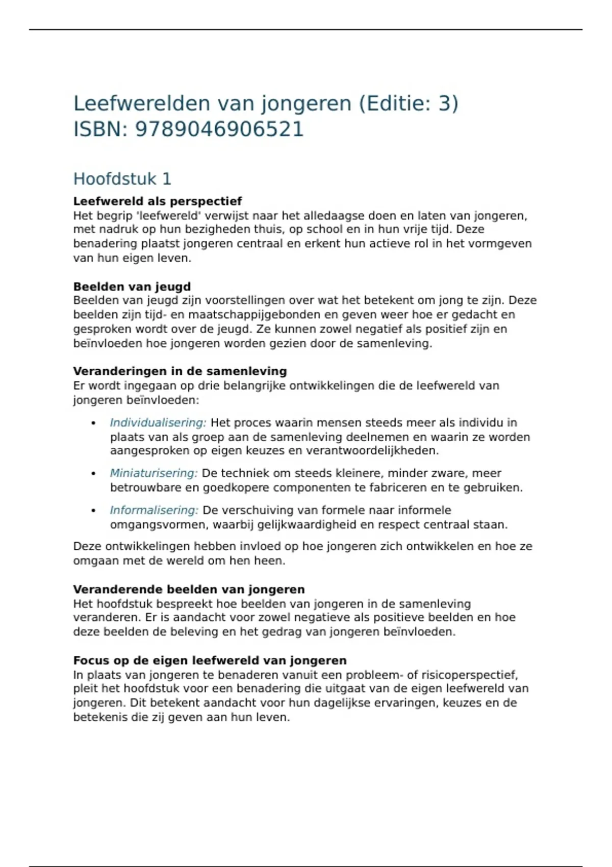 Het begrip 'leefwereld' verwijst naar het alledaagse doen en laten van jongeren,