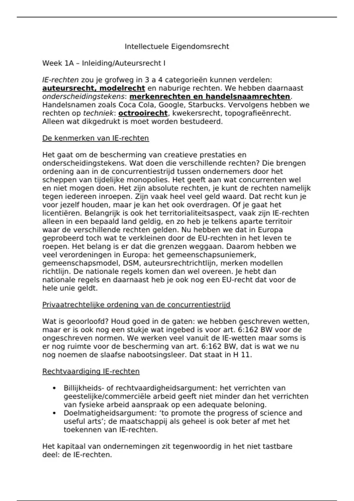 Lijstje van onderwerpen die bij elk IE-recht centraal staat, wat is nodig om