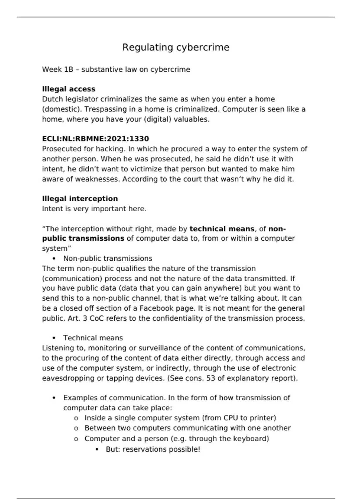 Lecture summary 'Regulating cybercrime'