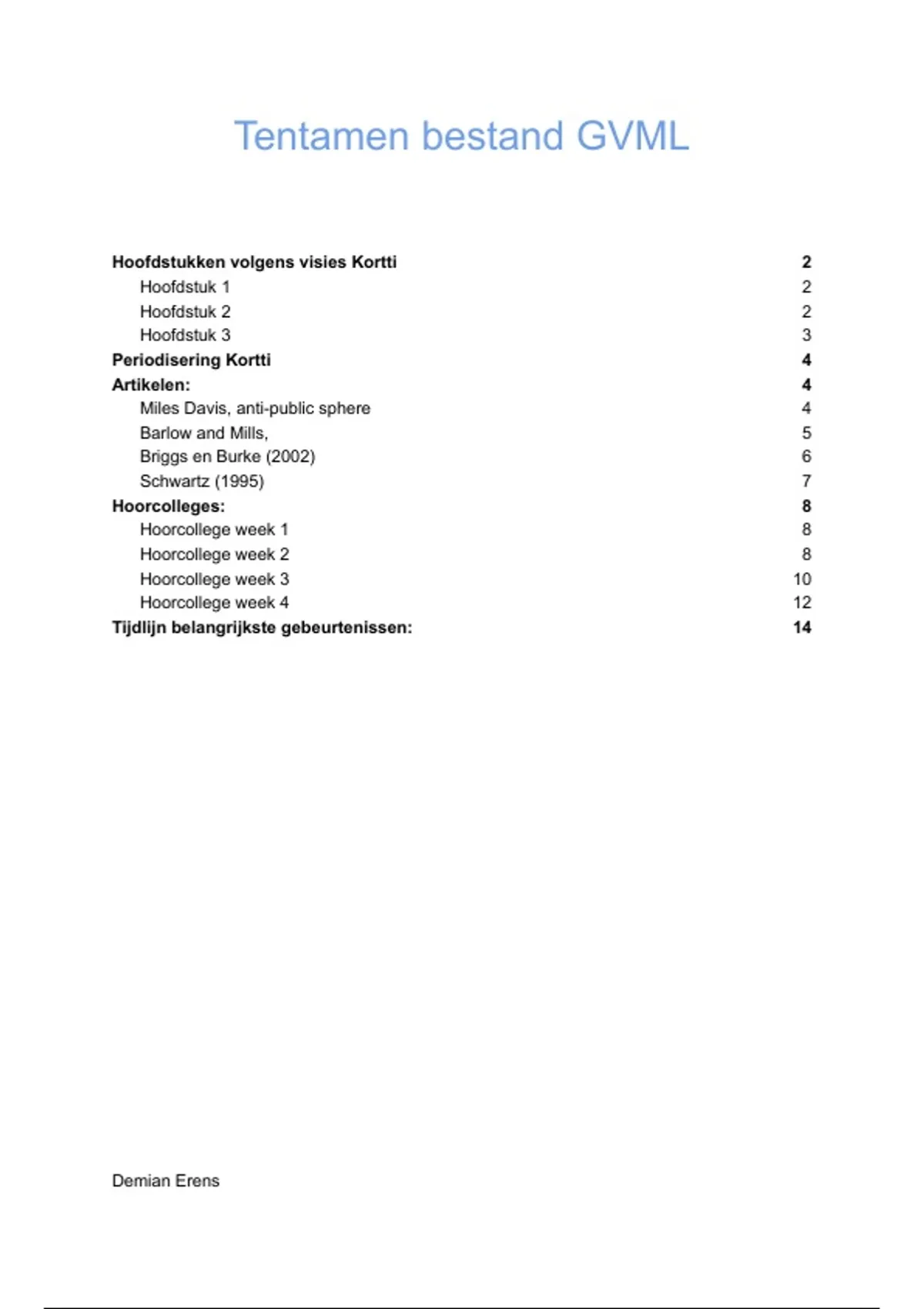 Kortti hoofdstuk 1 tm 3, hoorcolleges, artikelen, tijdlijn, verbindingen leggen tussen artikelen