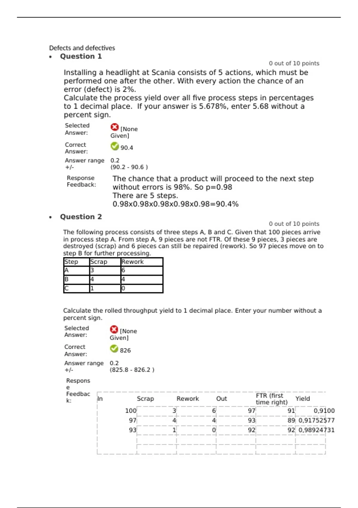 Calculate the rolled throughput yield to 1 decimal place. Enter your number without a