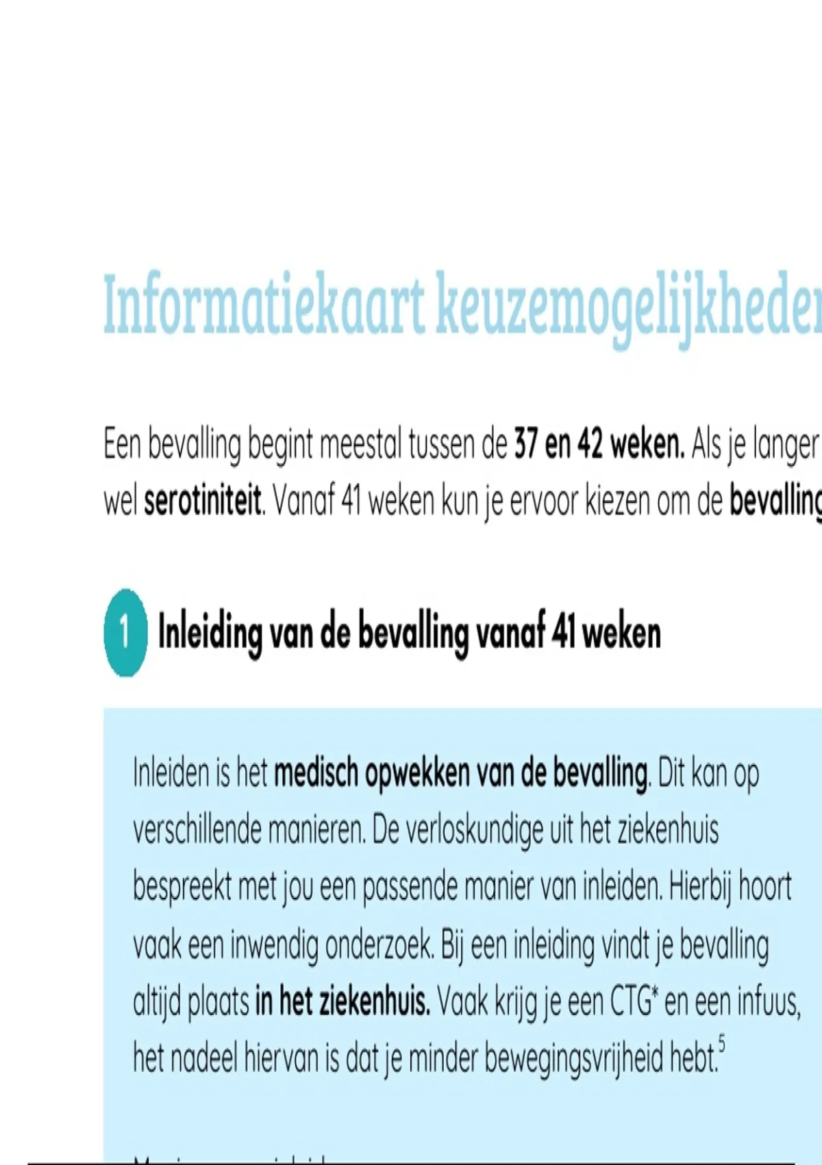 Informatiekaart keuzemogelijkheden na 41 weken zwangerschap