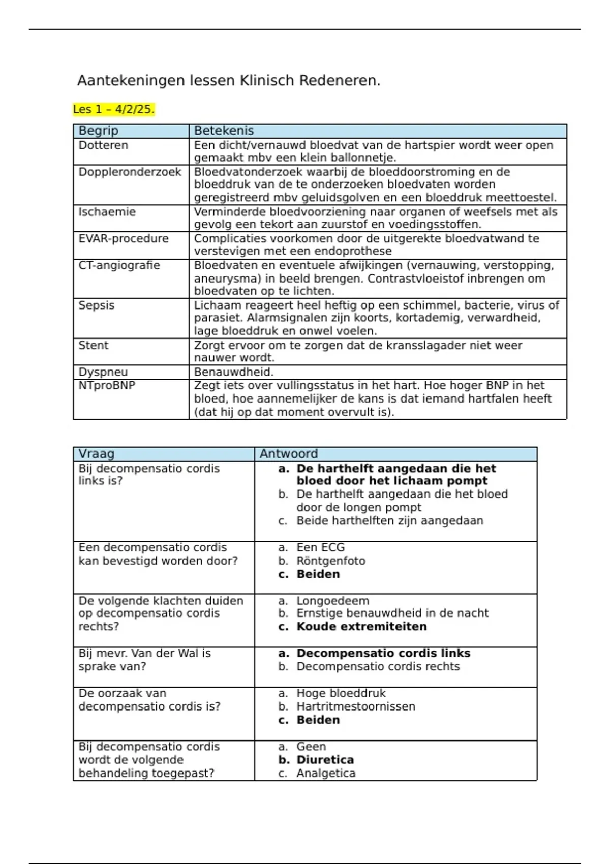 Aantekeningen lessen Klinisch Redeneren.