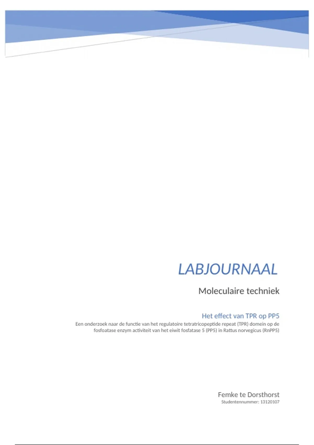 Labjournaal MolTech: Het effect van TPR op PP5