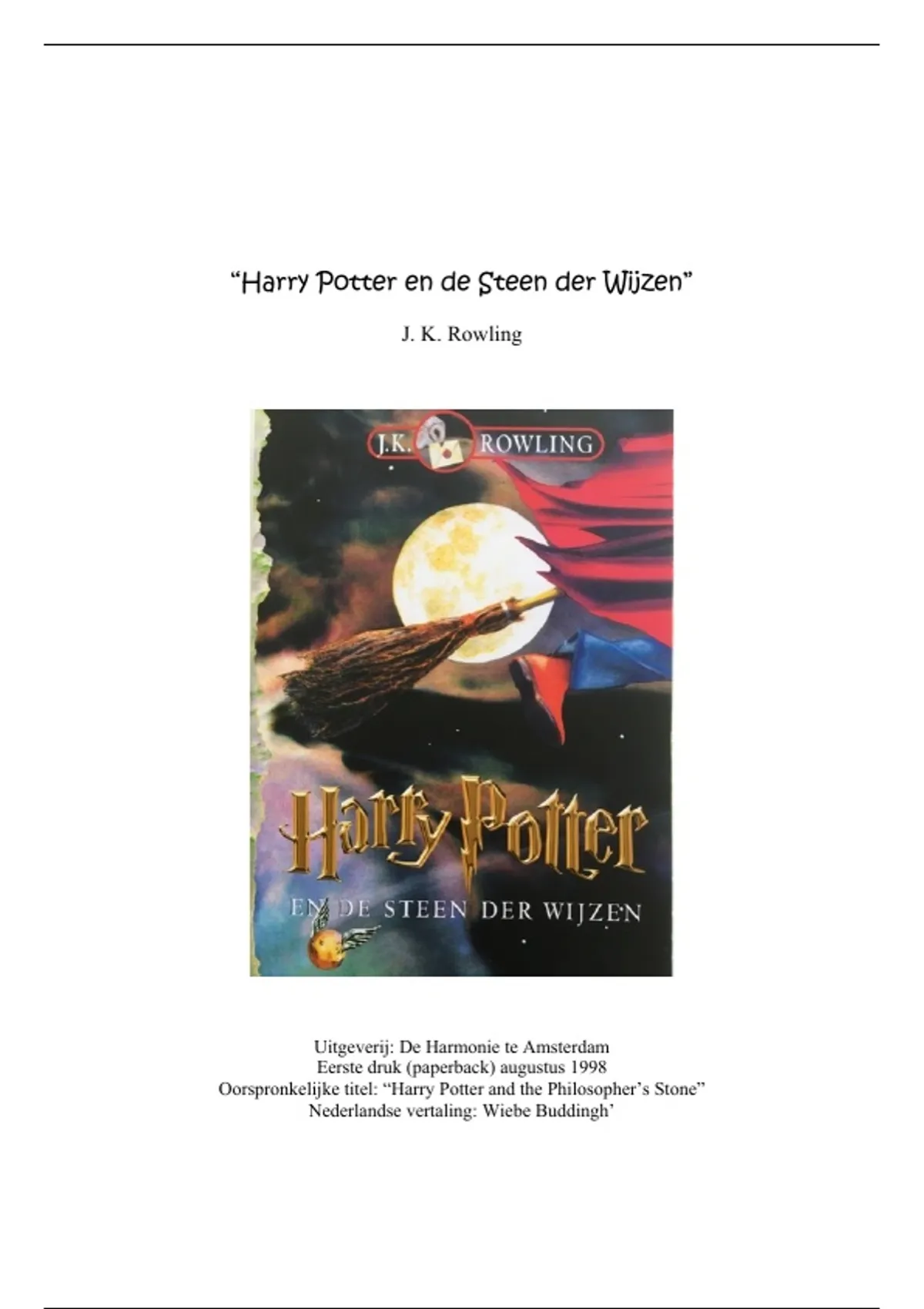 Oorspronkelijke titel: “Harry Potter and the Philosopher’s Stone”