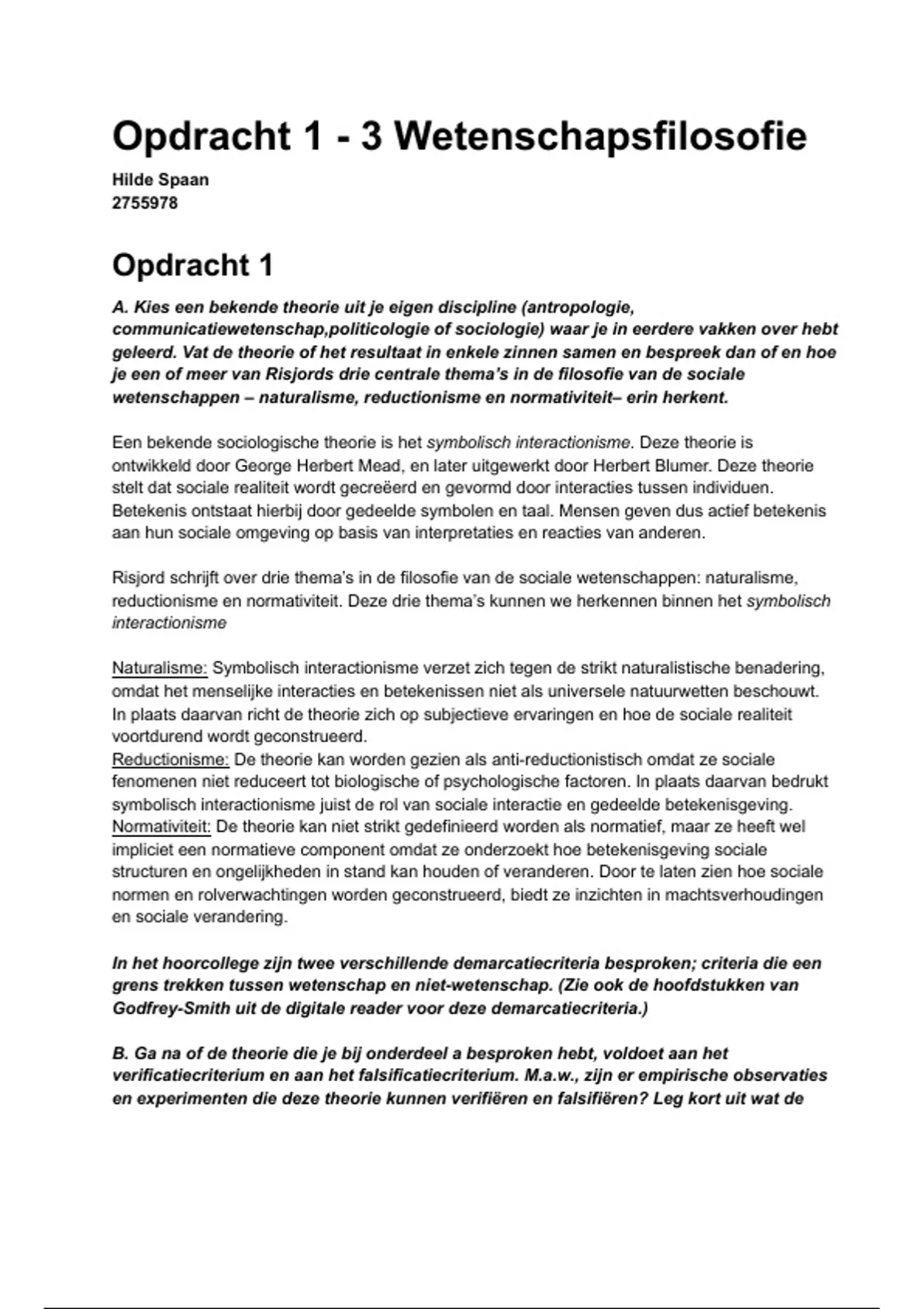 Symbolisch interactionisme voldoet dus slechts beperkt aan het verificatie- en