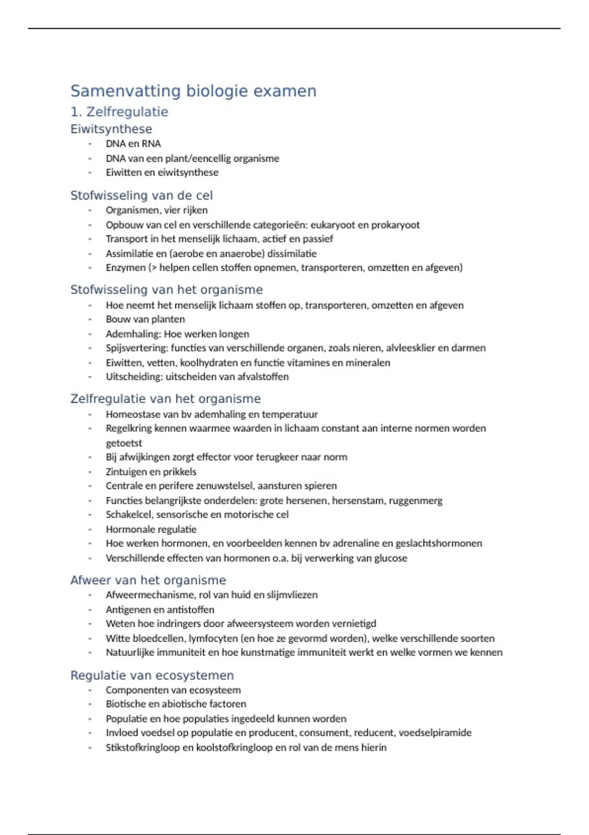 Samenvatting biologie examen