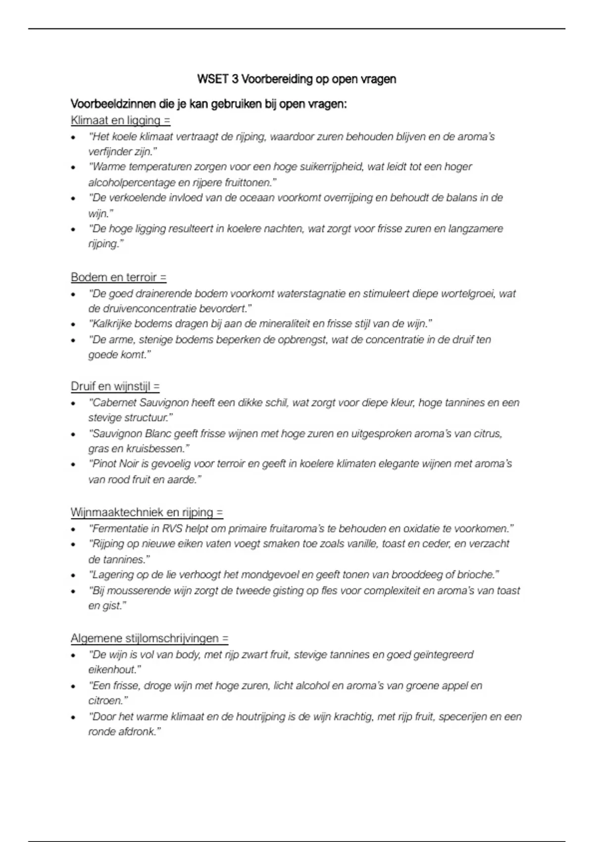 WSET 3 Voorbereiding op open vragen