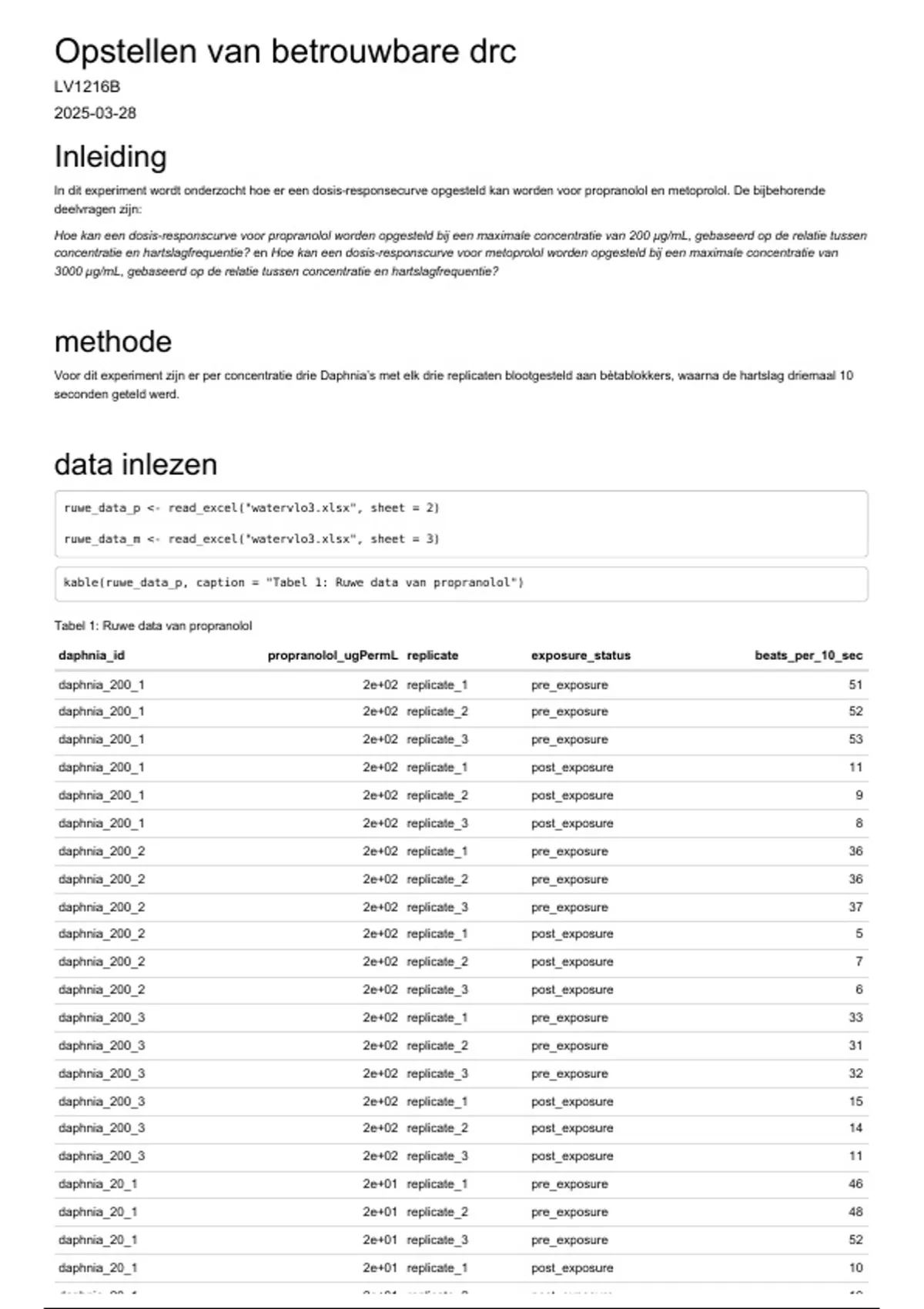Tabel 1: Ruwe data van propranolol