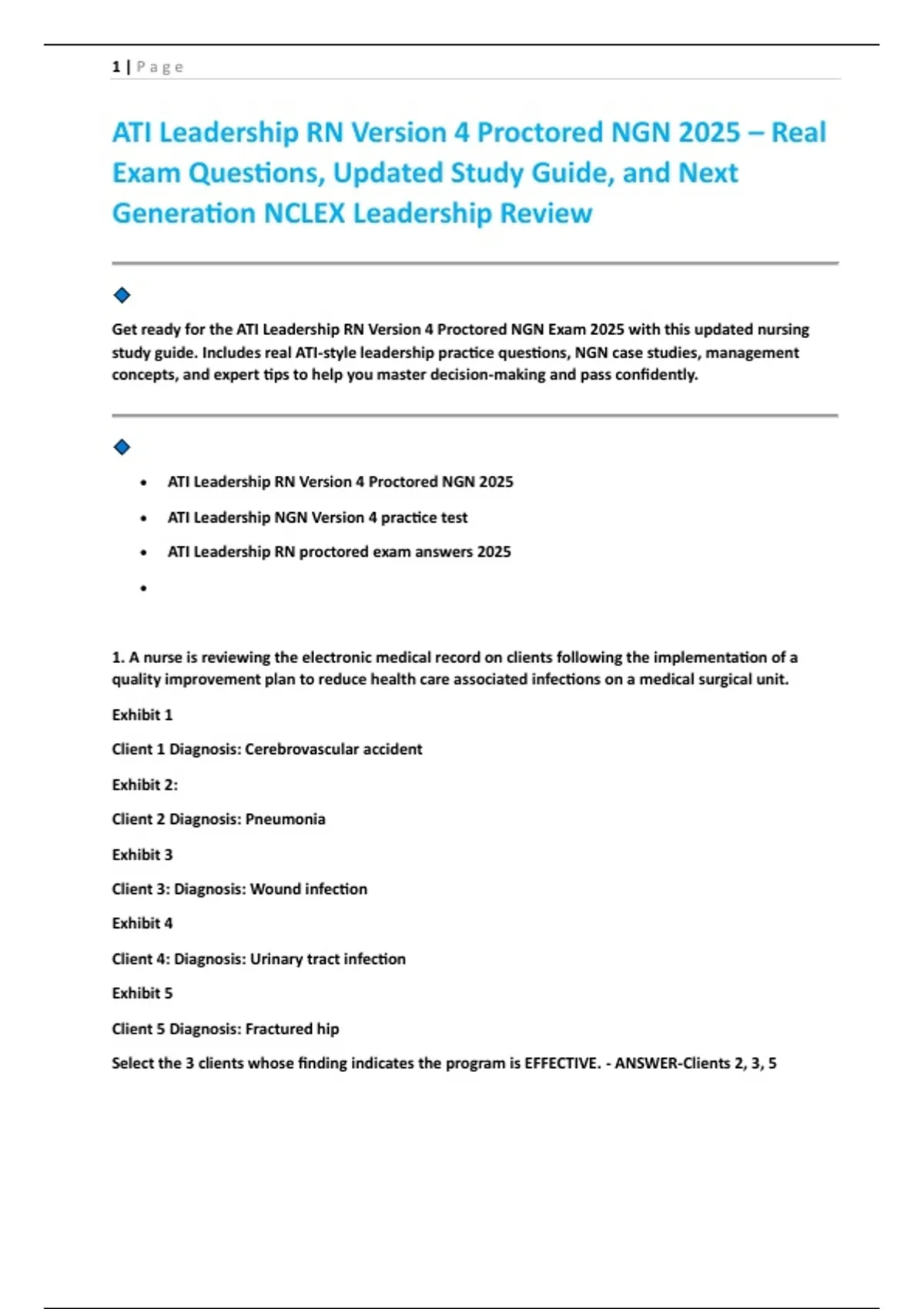 study guide. Includes real ATI-style leadership practice questions, NGN case studies, management