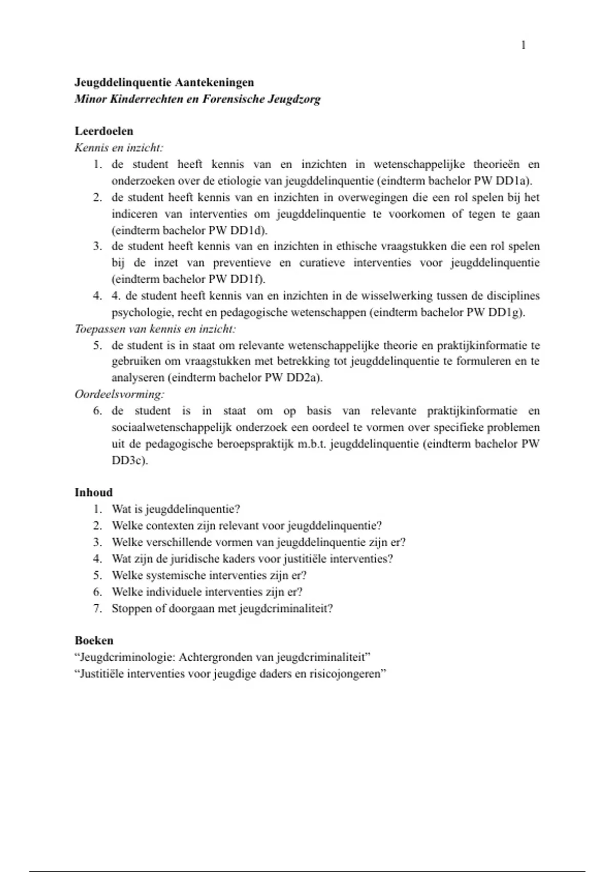 onderzoeken over de etiologie van jeugddelinquentie (eindterm bachelor PW DD1a).