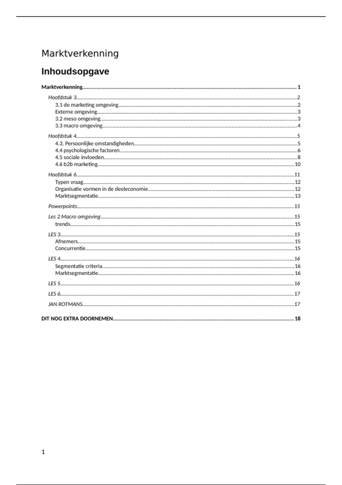 Marktverkenning.......................................................................................................................................... 1