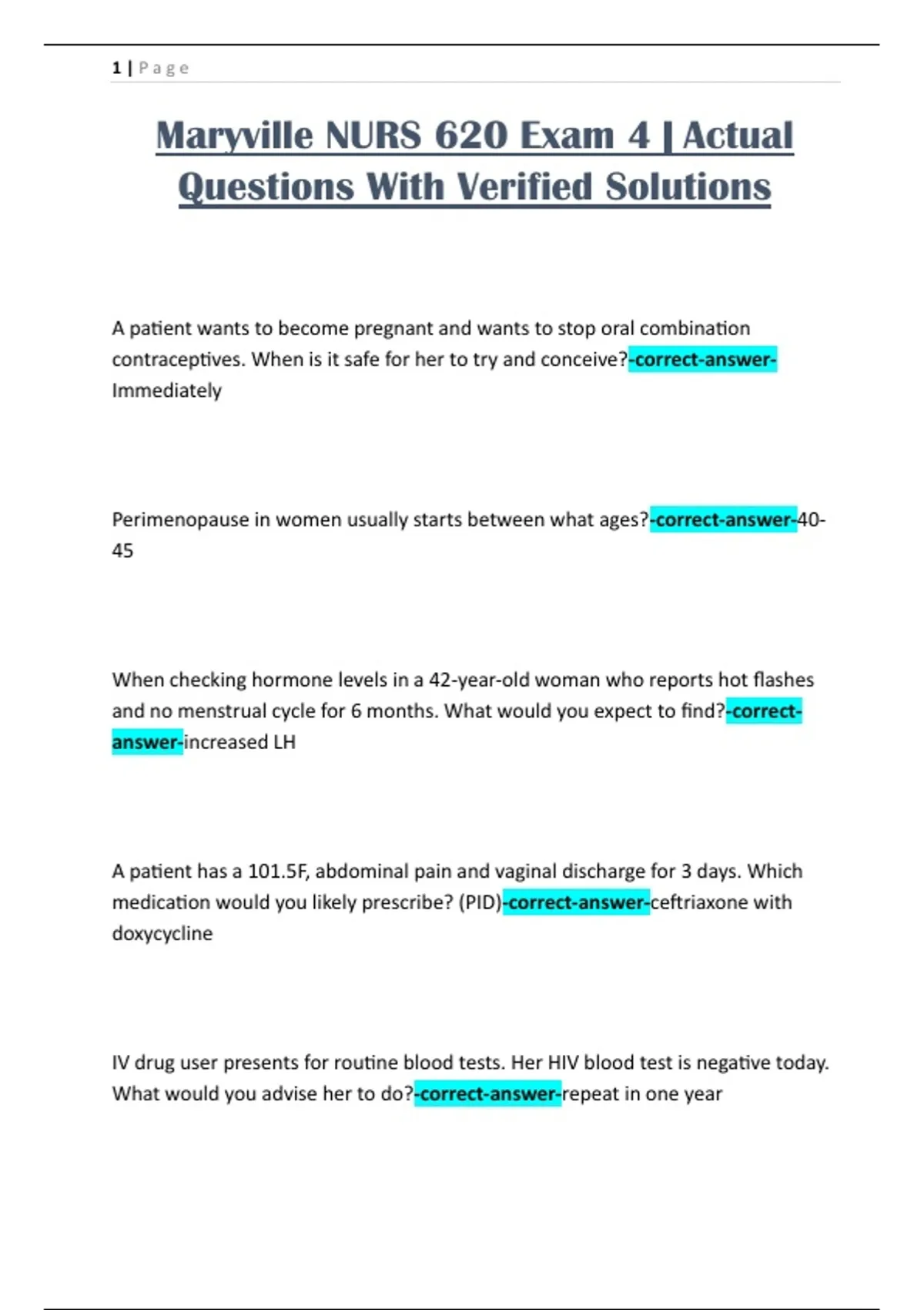Maryville NURS 620 Exam 4 | Actual Questions With Verified Solutions