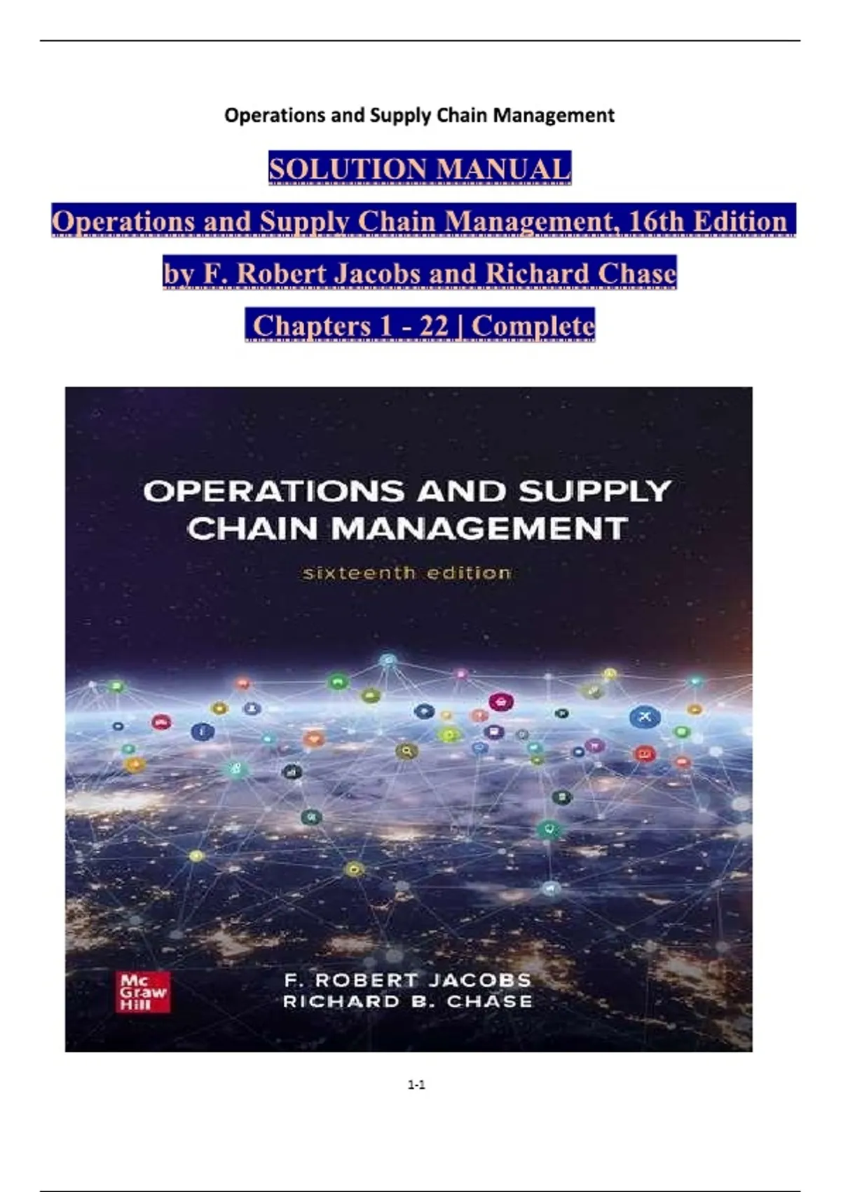 TEST BANK - Jacobs and Chase, Operations and Supply Chain Management 16th Edition, Chapters 1 - 22, Complete Newest Version