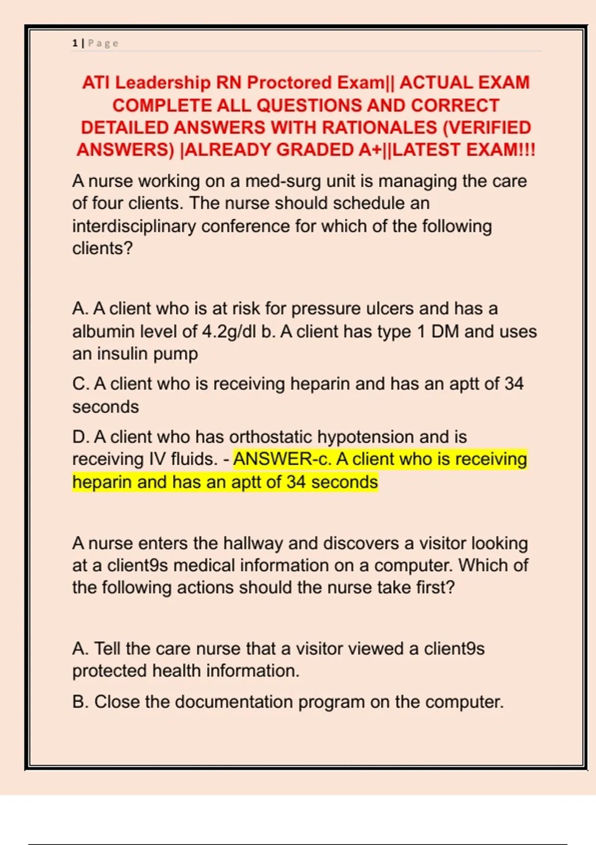 ATI Leadership RN Proctored Exam|| ACTUAL EXAM COMPLETE ALL QUESTIONS AND CORRECT DETAILED ANSWERS WITH RATIONALES (VERIFIED ANSWERS) |ALREADY GRADED A+||LATEST EXAM!!!
