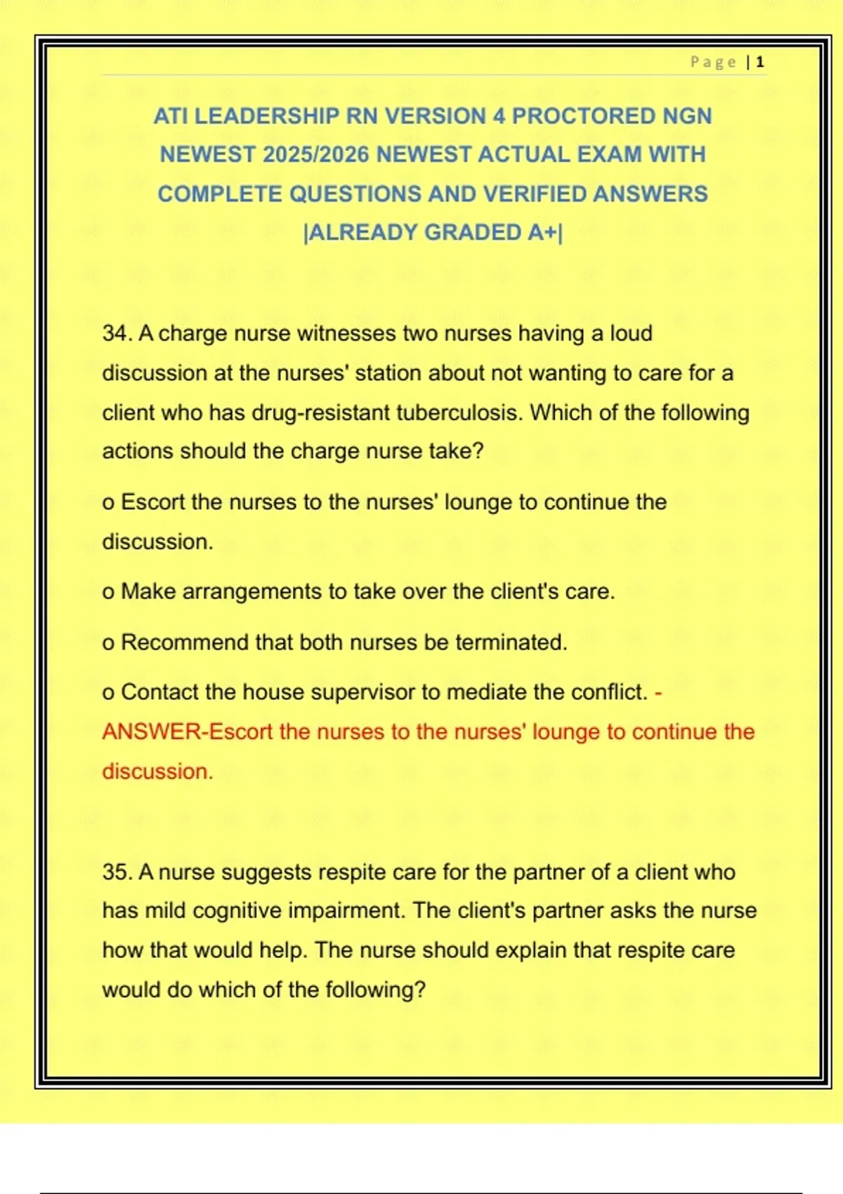 ATI LEADERSHIP RN VERSION 4 PROCTORED NGN NEWEST 2025/2026 NEWEST ACTUAL EXAM WITH COMPLETE QUESTIONS AND VERIFIED ANSWERS |ALREADY GRADED A+|